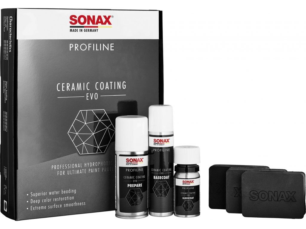 Kompletní sada keramické ochrany Sonax. Lak chráněný povlakem CC Evo nabízí nové vlastnosti, jako je výrazně zlepšená hydrofobita (vodní perličky), zvýšená chemická odolnost a zlepšená UV odolnost. Povlak CC Evo chrání před škodlivými biologickými vlivy, jako je hmyz, ptačí trus a např. skvrny ze stromové mízy. Velmi důležitou funkcí, kterou keramický povlak laku dodává, je ochrana před opětovným znečištěním a určitý samočisticí efekt. V konečném důsledku je to opticky dokonalý dojem, který zanechává sytě barevný lak s vysokým leskem po odborném nanesení.| Katalogové číslo | 237 941 |