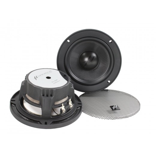 | Typ reproduktorůKoaxiální reproduktory: Koaxiální reproduktory se vyznačují konstrukcí tzv. vše v jednom. Výškový a středobasový reproduktor jsou v jednom koši. Výhodou je jednodušší montáž, ale díky spojení resp. blízkosti pásem v jednom reproduktoru, se obvykle sníží kvalita zvuku. Zpravidla uprostřed středobasového reproduktoru, je výškový reproduktor, jehož kmitací cívka pracuje ve druhé vzduchové mezeře společného magnatického obvodu. Třípásmový koaxiální reproduktor se skládá ze středobasového reproduktoru, ve předu na zvláštním nosníku je středový reproduktor a samostatný výškový. Komponentní reproduktory: Komponentní reproduktory se vyznačují rozdělením na jednotlivá frekvenční pásma, výškové + středobasové + popř. basové pásmo. Jednotlivé reproduktory se dají umístit zcela odděleně, což má za výsledek lepší zvukový i akustický projev. V drtivé většině případů komponentních reproduktorů je dodávaná i externí výhybka, která rozděluje výškové, středové / středobasové a u třípásma i basové pásmo popř. umožňuje nastavení decibelové úrovně u výškového reproduktoru (např. +2 dB, 0 dB, -2 dB), strmosti (např. 6dB/Okt. 12dB/Okt.) či aktivní nebo bi-amp zapojení. | Středobasové |