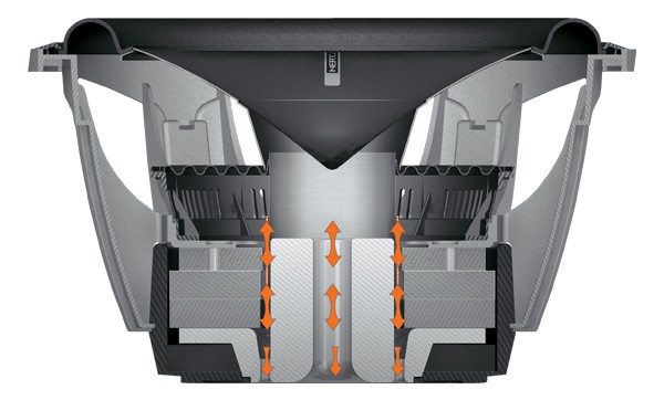 | Fs - rezonanční frekvenceFs - je spodní rezonanční kmitočet. Tento parametr je de facto volný vzduch rezonanční frekvence subwooferu. Jednoduše řečeno, je to bod, ve kterém se hmotnost pohybujících se částí subwooferu vyrovnává síle suspenze subwooferu, když je v pohybu. Pokud jste někdy viděli kousek provázku, který začal nekontrolovatelně broukat ve větru, viděli jste efekt dosažení rezonanční frekvence. Hmotnost pohyblivých částí a tuhost odpružení (surround a spider) jsou klíčovými prvky, které mají vliv na rezonanční frekvenci. Jako obecné pravidlo platí, že nižší Fs označuje subwoofer, který by byl pro reprodukci nízkých frekvencí lépší než subwoofer s vyšší Fs. Není tomu tak ale vždy, jelikož do výsledného zvuku vstupují pak i další důležité parametry subwooferu. | 31 Hz |