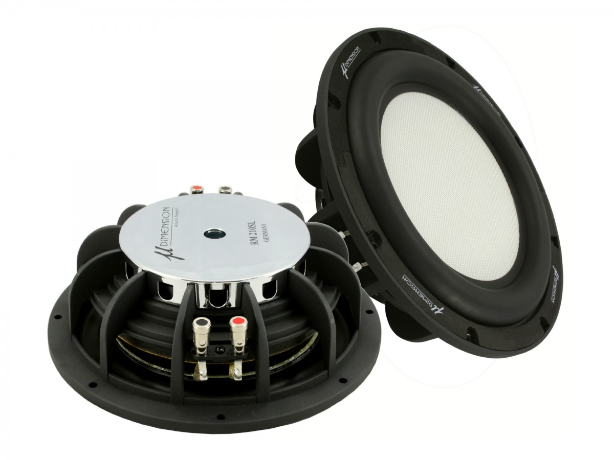 | Průměr subwooferuPrůměr subwooferu je uváděn na šroubovací díry. Celkový vnější průměr subwooferu je obvykle o 1-2 cm širší, dle rozměrové kategorie subwooferu. U 30-ti cm subwooferu je vnější průměr vč. ochranné gumy 31,8 cm a u 25-ti cm subwooferu je to 26,5 cm vč. ochranné gumy. | 250 mm (10") |