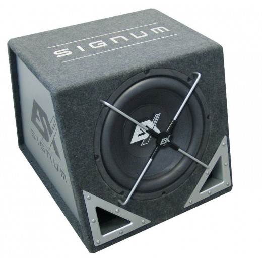 | Ostatní | ozvučnice se dvěma bassreflexy o trojúhelníkovém průřezu v dolní části přední desky, box potažený tmavě šedivým kobercem s jemnými melíry, ochrané tyčky subwooferu, papírová membrána s tužícím nástřikem, gumový závěs |