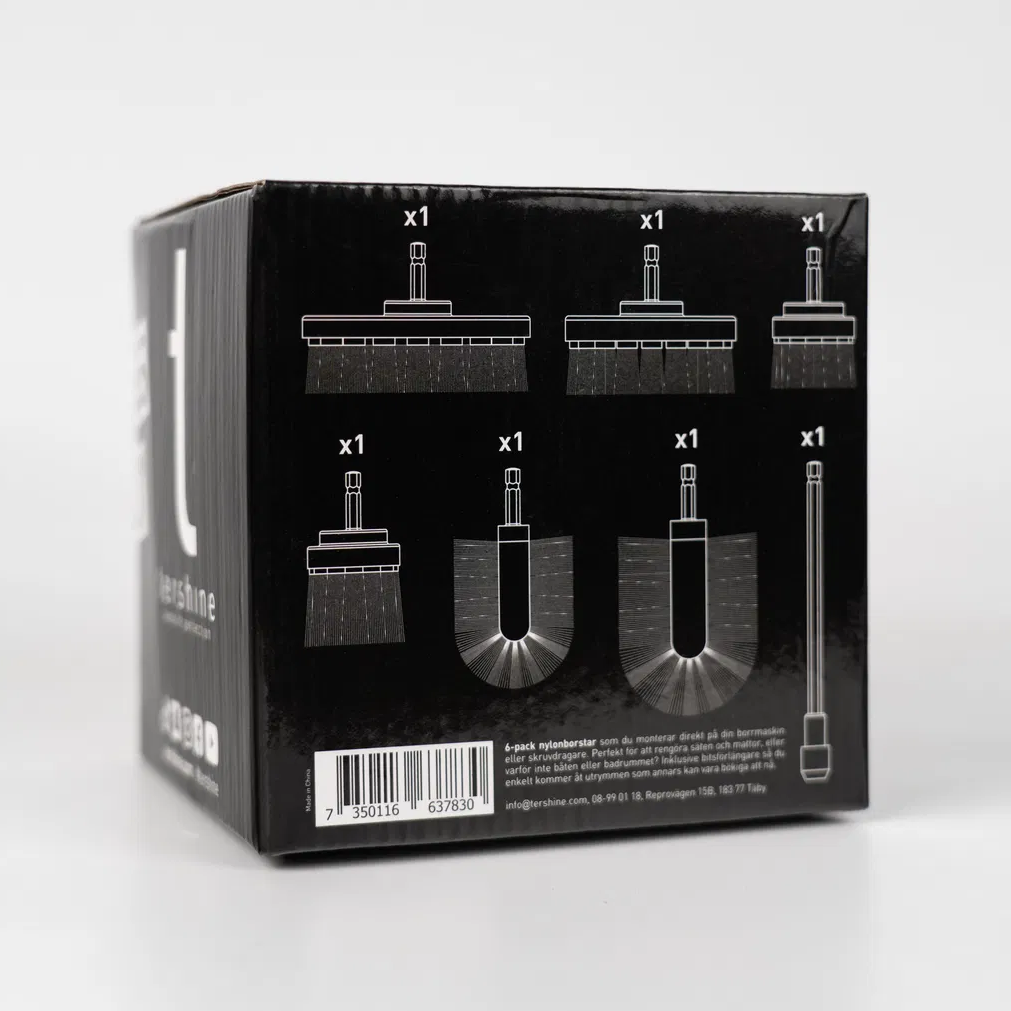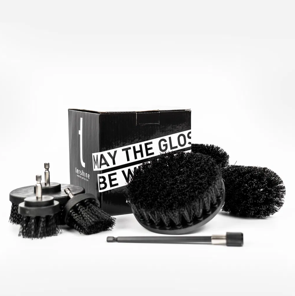 Balení 6 nylonových kartáčů, které lze namontovat přímo na vrtačku nebo aku šroubovák. Perfektní nástroj pro čištění sedadel nebo koberců. Sada je včetně 15cm nástavce (bit), který vám umožní přístup do míst, která by jinak mohla být obtížně přístupná. Skvělé kombo ve spojení s universálním čističem Tershine APC - nejen pro auto, ale i pro použití i v domácnosti. Vyniká i v kombinaci s Tershine Extract na "zažrané" a odolné nečistoty např. na balkóně, fasádě, lodi nebo jiných venkovních površích.