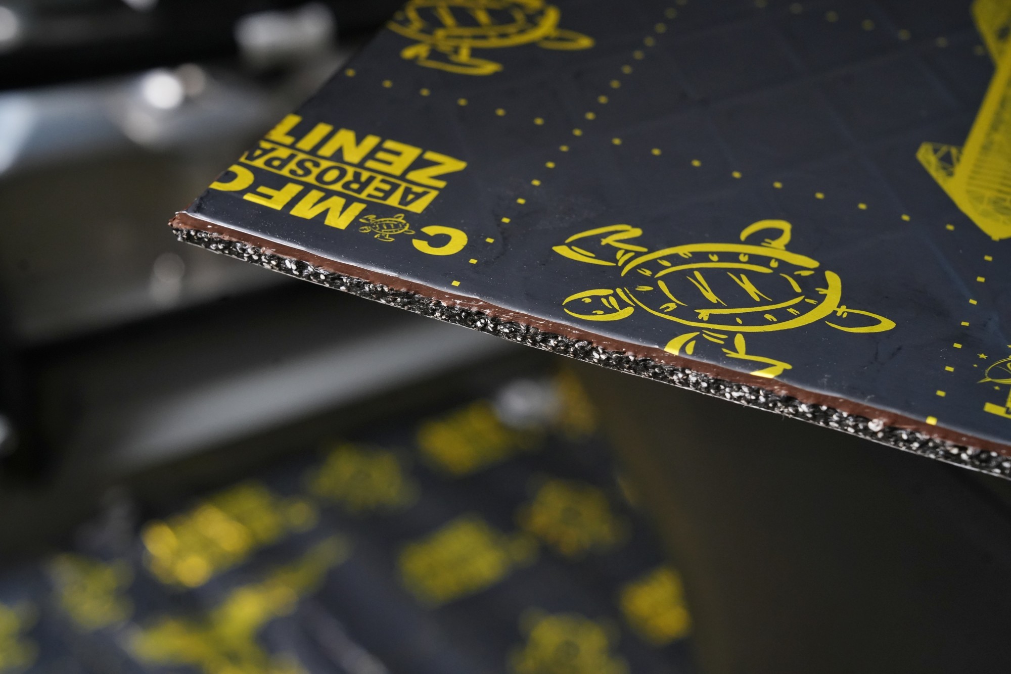 Comfortmat Zenith je vlajkovou lodí celé řady Aerospace a vůbec nejúčinnějším jednovrstvým materiálem pro odhlučnění automobilu. Samotná konstrukce materiálu disponuje tloušťkou 9 mm. Základ tvoří vibroakustická vrstva se zpěněnými elastickými granulemi o nízké hustotě. Kombinace těžké matrice a lehkých, pružných granulí umožňuje účinné pohlcování a rozptyl vibrací v širokém frekvenčním spektru, a to včetně problematických nízkých frekvencí. Akustickou účinnost dále zvyšuje elastická membrána o tloušťce 3 mm, která působí jako bariéra proti vzdušnému hluku. Celou strukturu pak chrání a stabilizuje vrchní hliníková fólie Scale One o tloušťce 100 mikronů. Ta zajišťuje rozměrovou stabilitu, dodává povrchu tuhost a chrání materiál při manipulaci i v dlouhodobém provozu.
