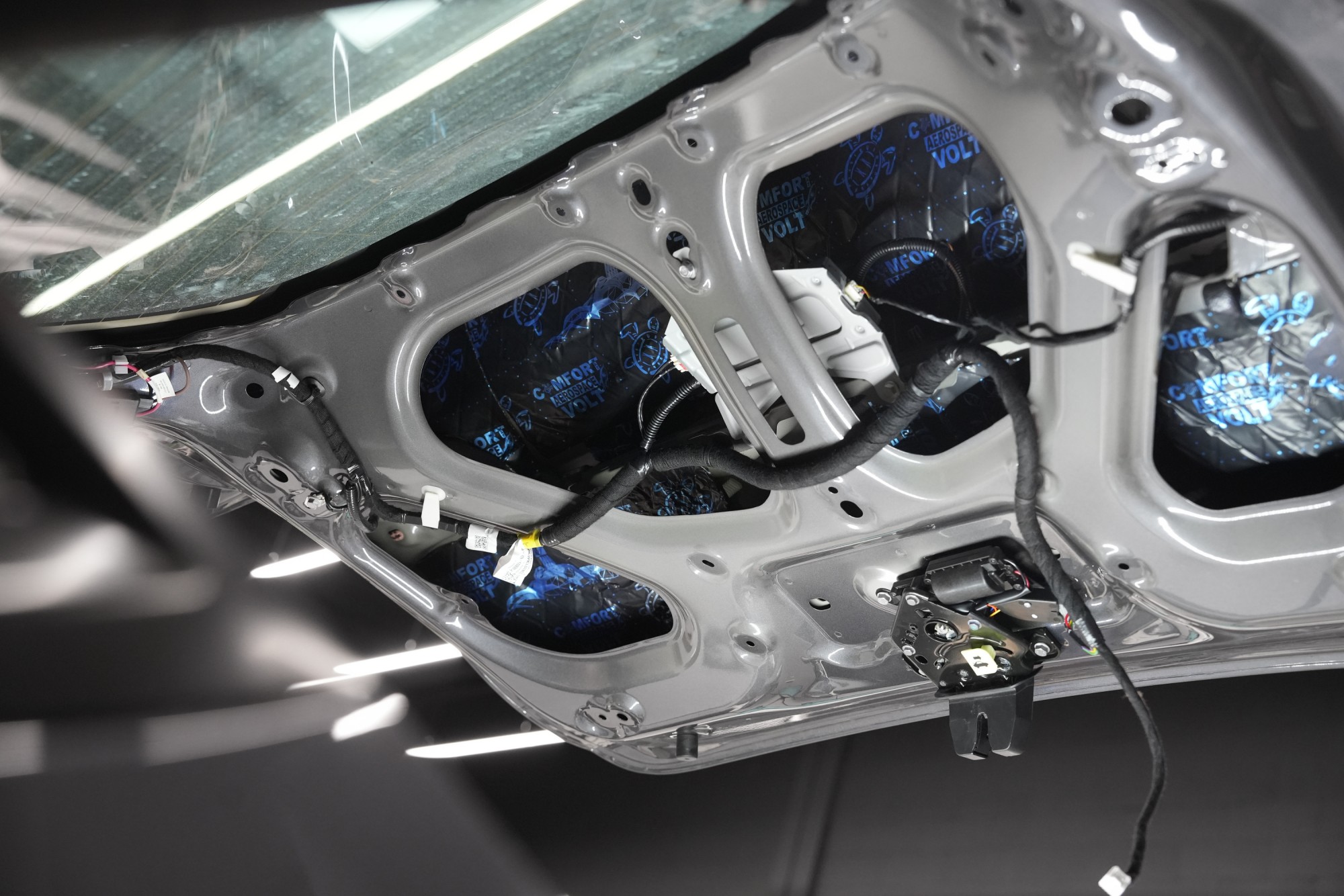 Na páté dveře jsme zvolili opět Comfortmat Volt. Díky své tloušťce 2,5 mm a velmi nízké hmotnosti nepřináší zbytečné zatížení, ale přesto účinně eliminuje vibrace velké plochy plechu. Volt je pro tuto část vozu ideální volbou – zachovává lehkost a zároveň zvyšuje tuhost i akustický komfort celé zadní části karoserie.
