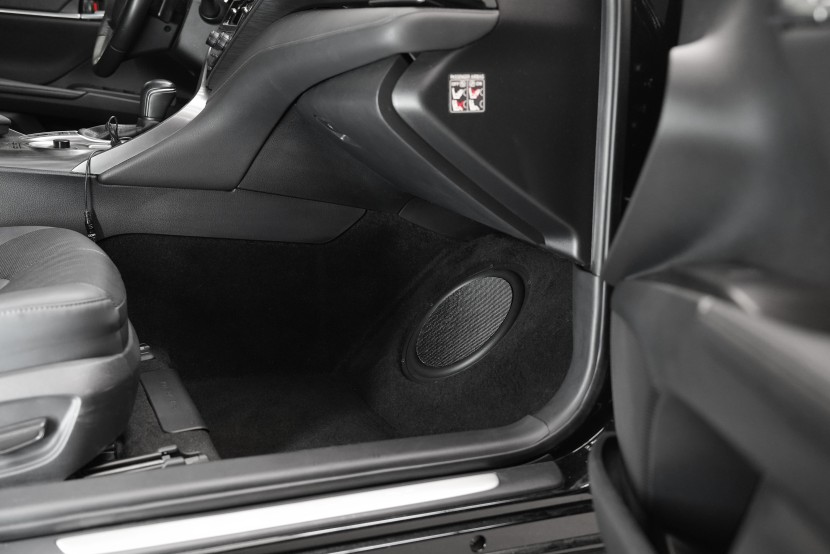 Ozvučnici jsme navrhli a vyrobili přesně na míru prostoru pod palubní deskou, kde se nám podařilo dosáhnout přesně předepsaného objemu 14 l. Aby byl subwoofer maximálně chráněn proti mechanickému poškození a zároveň nebyla omezena jeho funkce, vyrobili jsme speciální ochranný kryt s průzvučnou tkaninou. Ten je navržen tak, aby na něj mohl spolujezdec bez obav položit nohy, aniž by došlo k poškození subwooferu nebo negativnímu ovlivnění zvuku. Jak je patrné i z fotografií, ani dlouhonohá spolujezdkyně nemusí v tomto prostoru pociťovat zásadní omezení.