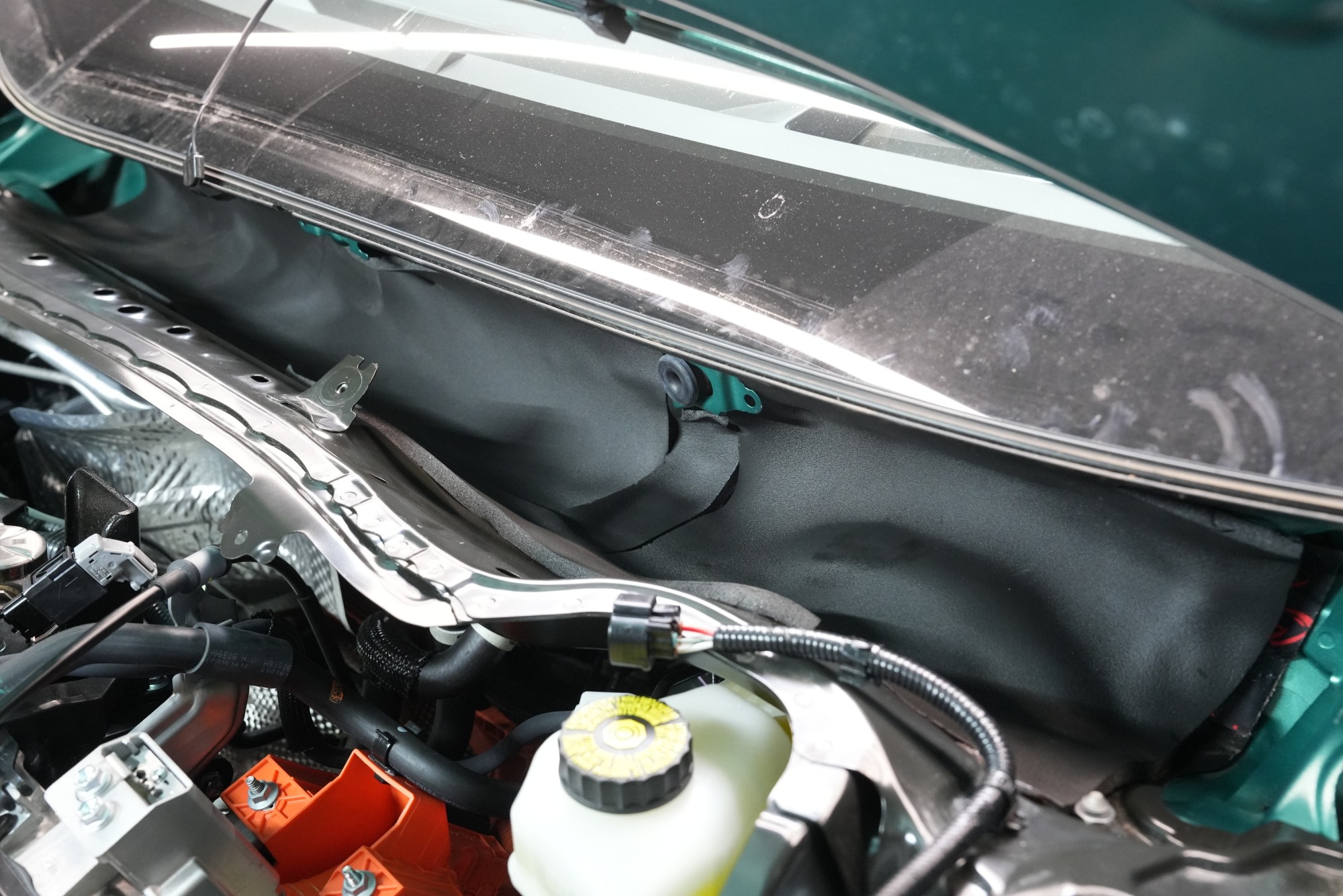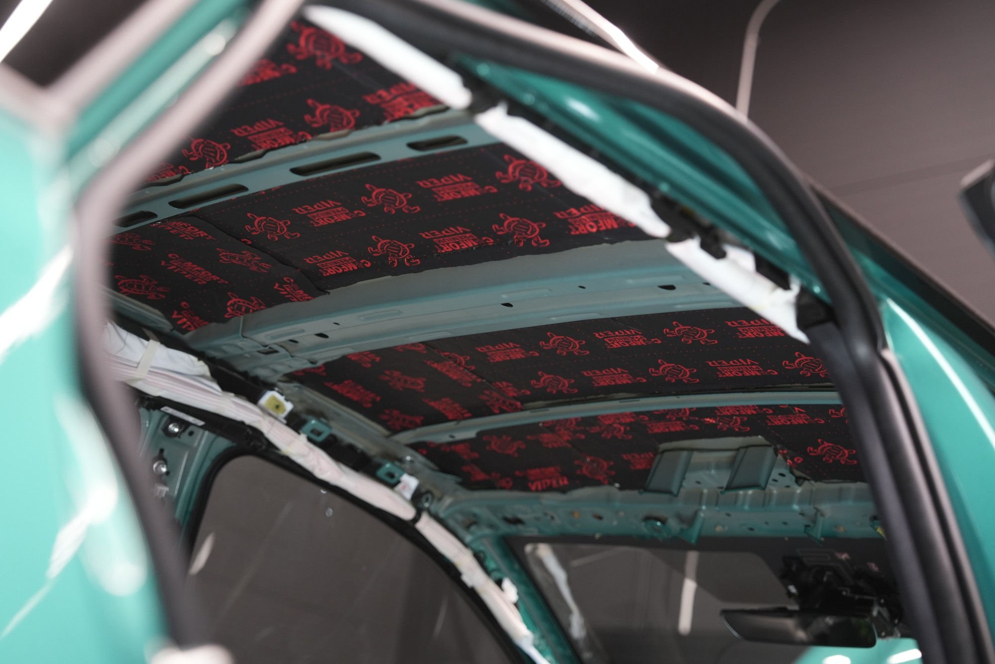 Také odhlučnění torpéda může přinést zajímavé výsledky. Stěrače jsou zdrojem silných vzduchových turbulencí a prostor pod spodním okrajem čelního skla je často veliký. Vytváří se zde efekt zvuku v jeskyni a to v bezprostřední blízkosti interiéru. Druhým důvodem k odhlučnění torpéda je snížení hluku od motoru. Nejprve tradičně aplikujeme antivibrační materiál, konkrétně Comfortmat Viper, který odfiltruje silné vibrace motoru. Jako druhou vrstvu nejčastěji aplikujeme zvukově izolační materiál Comfortmat Neoprene 10 a to z několika důvodů. Kromě dostatečné zvukové izolace tento materiál nabízí i absolutní voděodolnost, která je pro tuto oblast zásadní. A jelikož torpédo je často opatřeno mřížkou, je černá barva tohoto materiálu ideální pro nenápadnou aplikaci.