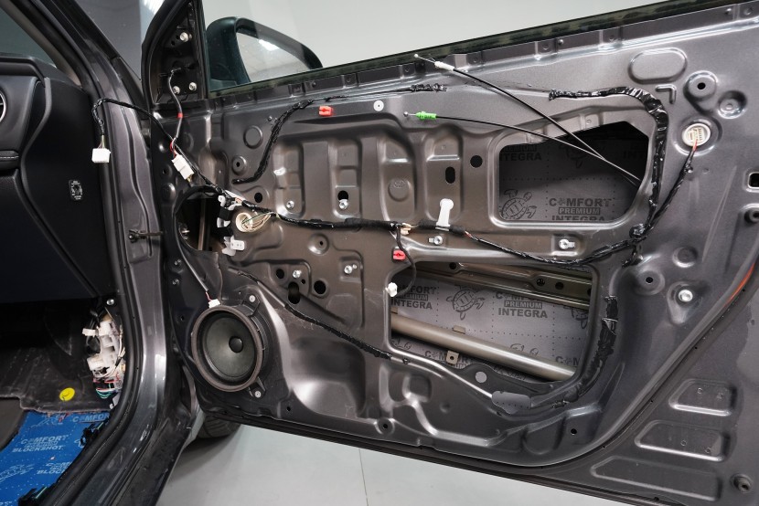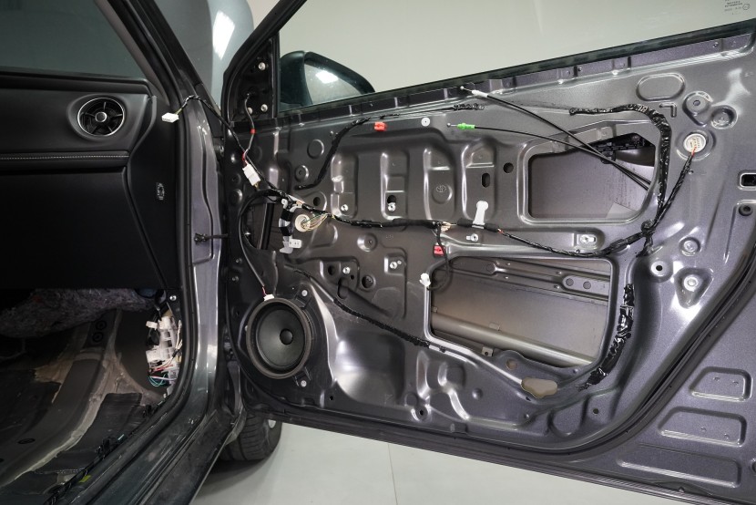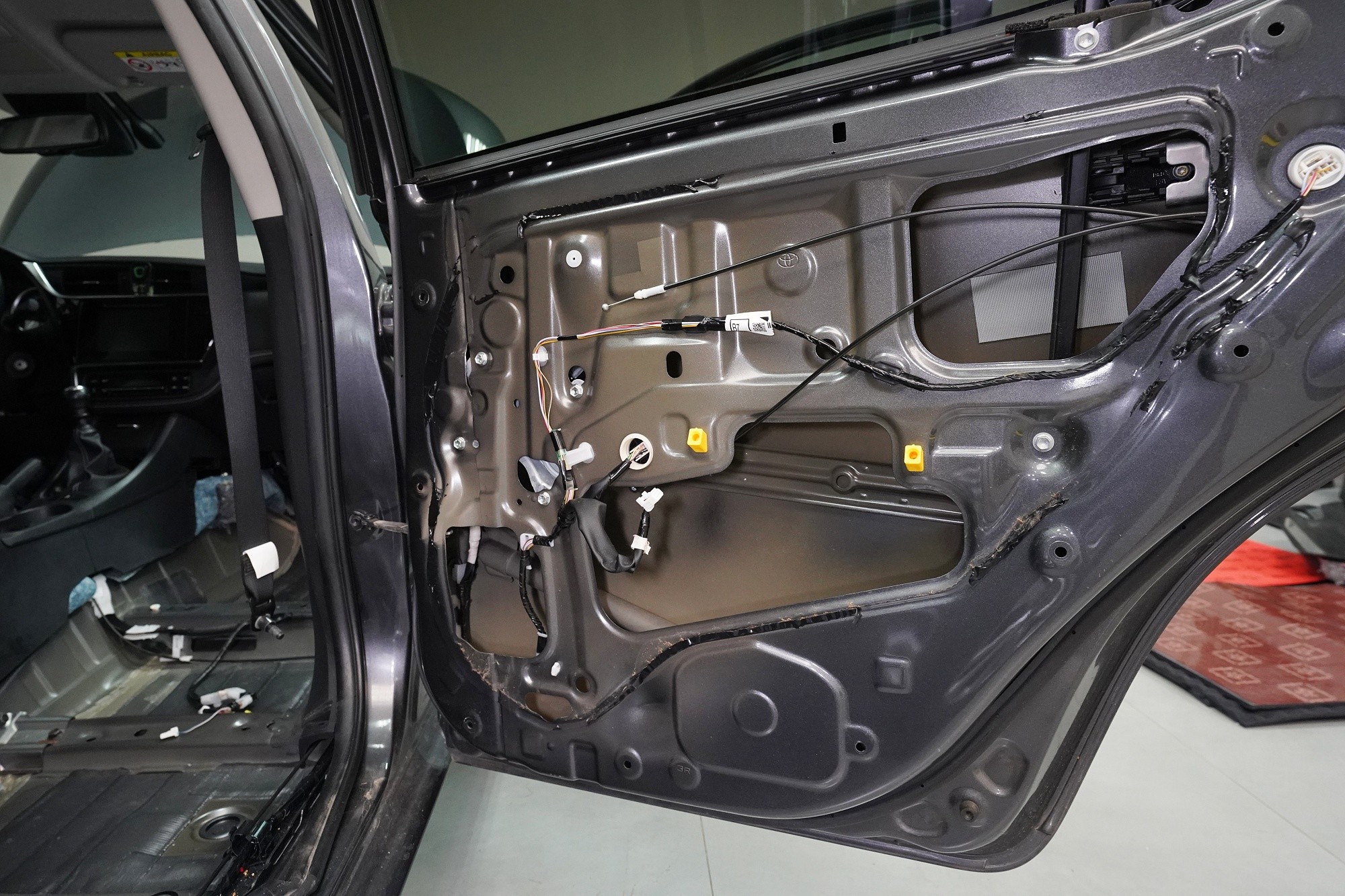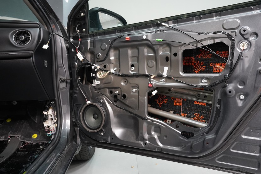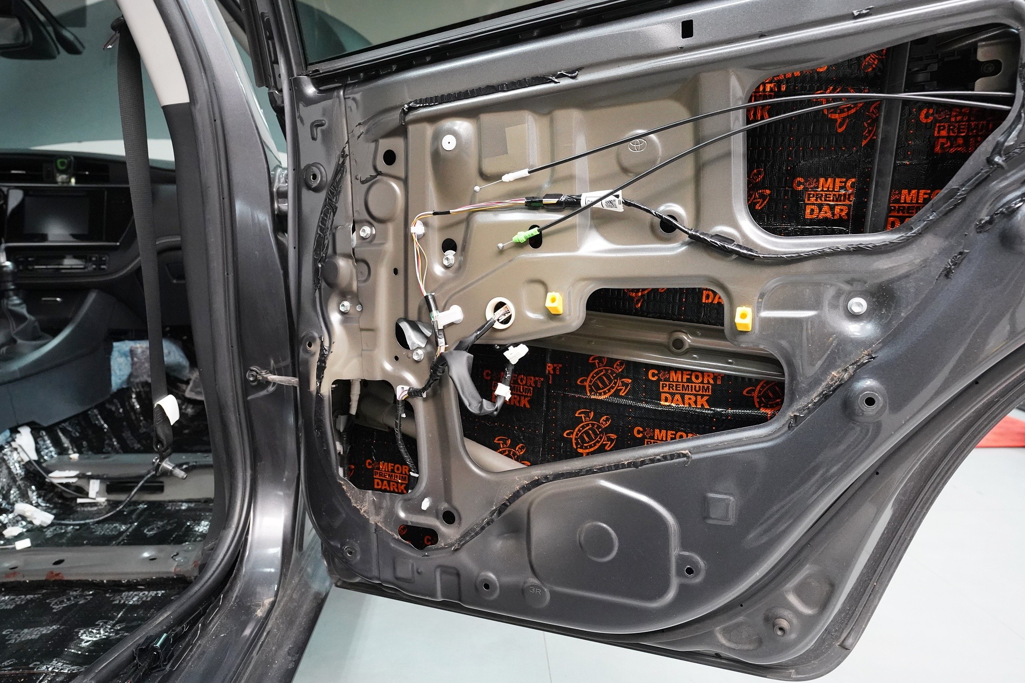 Odhlučnění vozu Toyota Corolla. Již jedenáctá generace tohoto oblíbeného modelu trpí známými problémy této japonské automobilky, mezi které patří zejména nedostatečná ochrana proti vibracím a prakticky nulová zvuková izolace. To se projevuje výrazným hlukem od pneumatik, vody i kamínků v podbězích, hlukem větru při vysokých rychlostech, ale i skřípáním plastu v důsledku tužšího odpružení. To vše snižuje jízdní komfort tohoto vozu, my však máme skvělý recept jak tomu zamezit a zařadit Toyotu Corollu z hlediska zvukové izolace do prémiové třídy. Po našem odhlučnění zmizí vibrace od motoru, převodovky nebo odpružení a také vzduchem přenášený hluk různých frekvencí z oblasti podlahy, předních i zadních podběhů a samozřejmě i dveří a zadní části vozu. Se zákazníkem jsme se tedy domluvili na našem nejžádanějším balíčku odhlučnění Premium. Konkrétně se zaměříme na přední, zadní i páté dveře, podlahu, zavazadlový prostor, přední a zadní podběhy ze strany vozu a kapotu. Pro odhlučnění používáme špičkové antivibrační a zvukově izolační materiály Comfortmat, včetně několika nedávno zveřejněných novinek. Na instalaci pracují zároveň tři naši technici, kteří montáž zvládnou v rámci 1 pracovního dne. Všechny důležité informace se dozvíte v naší rozsáhlé fotoreportáži.