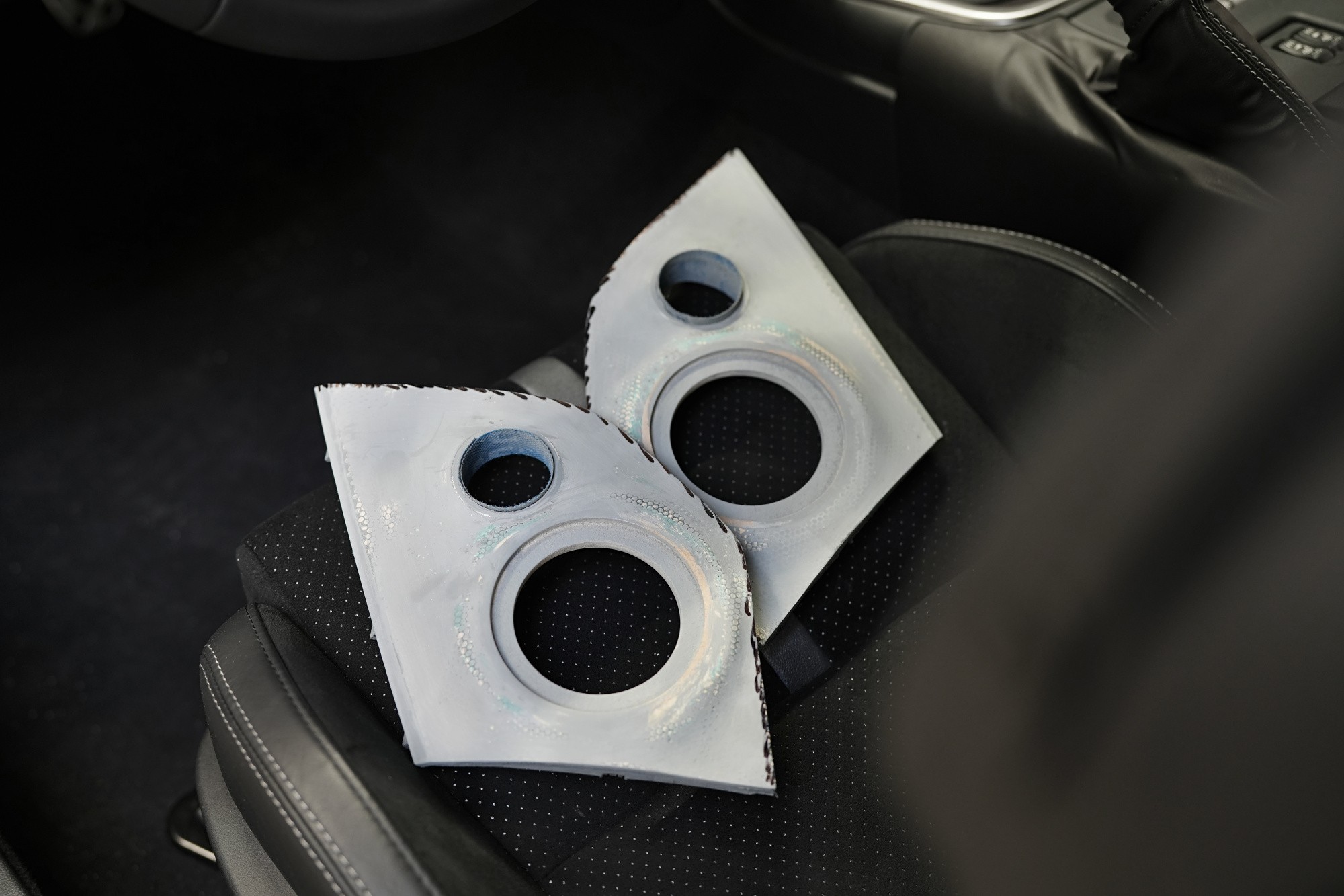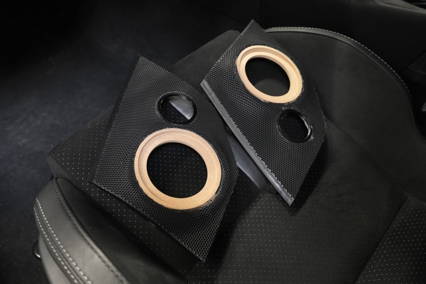 A nyní se již díváte na finální výsledek nachystaný pro osazení reproduktory. Mřížky jsme potáhli do koženky, která je barvou i strukturou podobná palubní desce a naváže na její design.