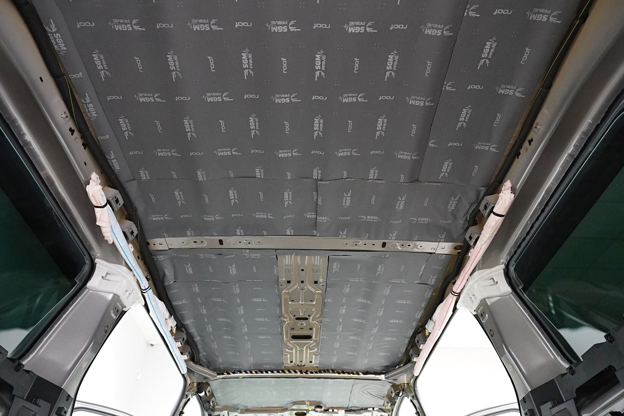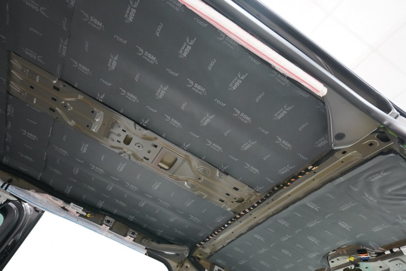 U balíčku Expert Plus odhlučňujeme dvěma vrstvami i střechu. Tou první je lehký antivibrační materiál SGM Air 3 o tloušťce 3 mm a MLF 0,42 jednotek. Air 3 střechu zpevní, zamezí vibracím a například i hluku od dešťových kapek. Díky důkladnému rozválečkování a perfektní adhezi materiálu se nemusíte obávat odlepení během celé životnosti vozu.