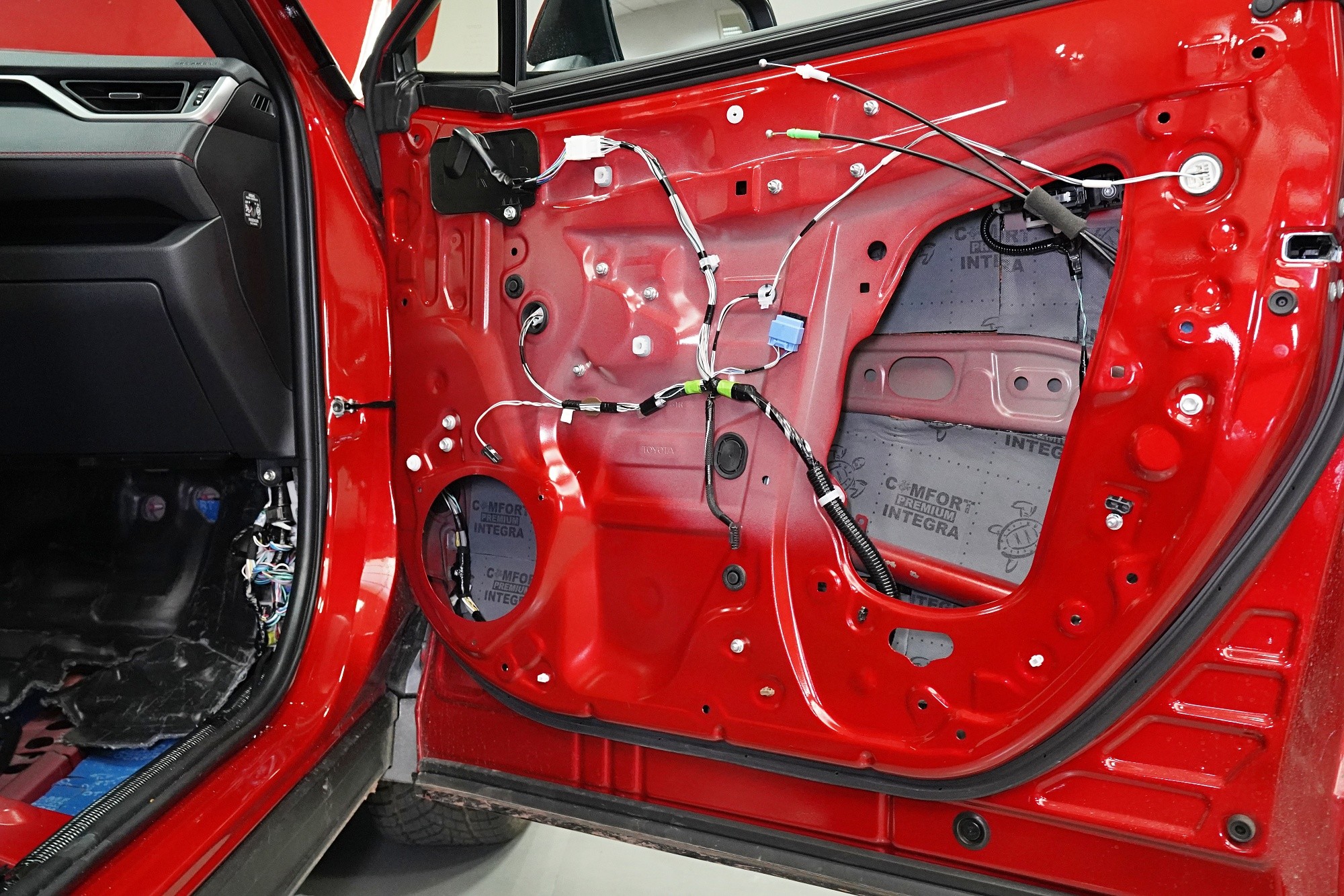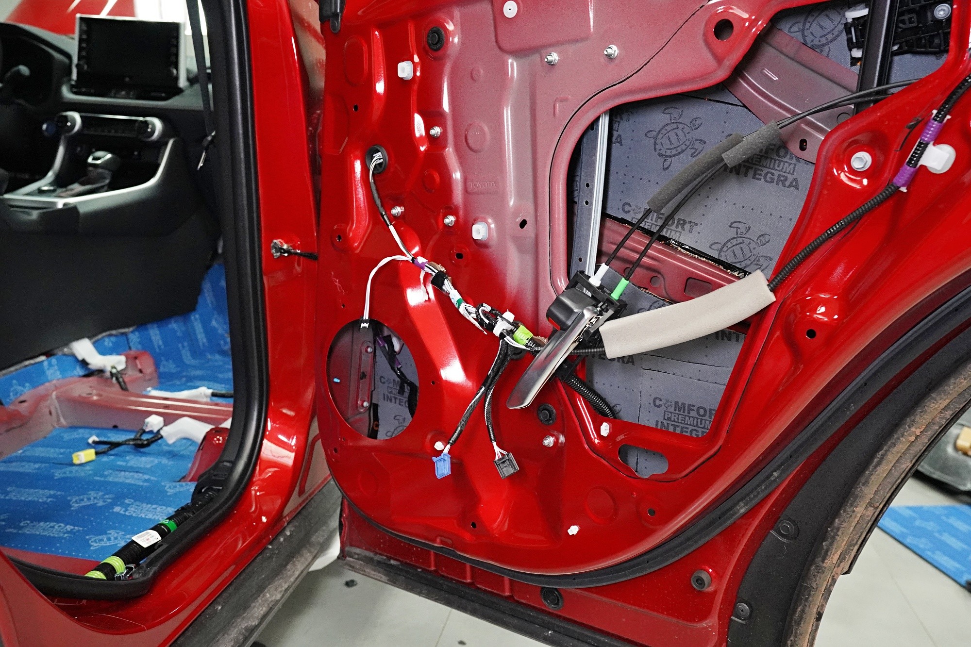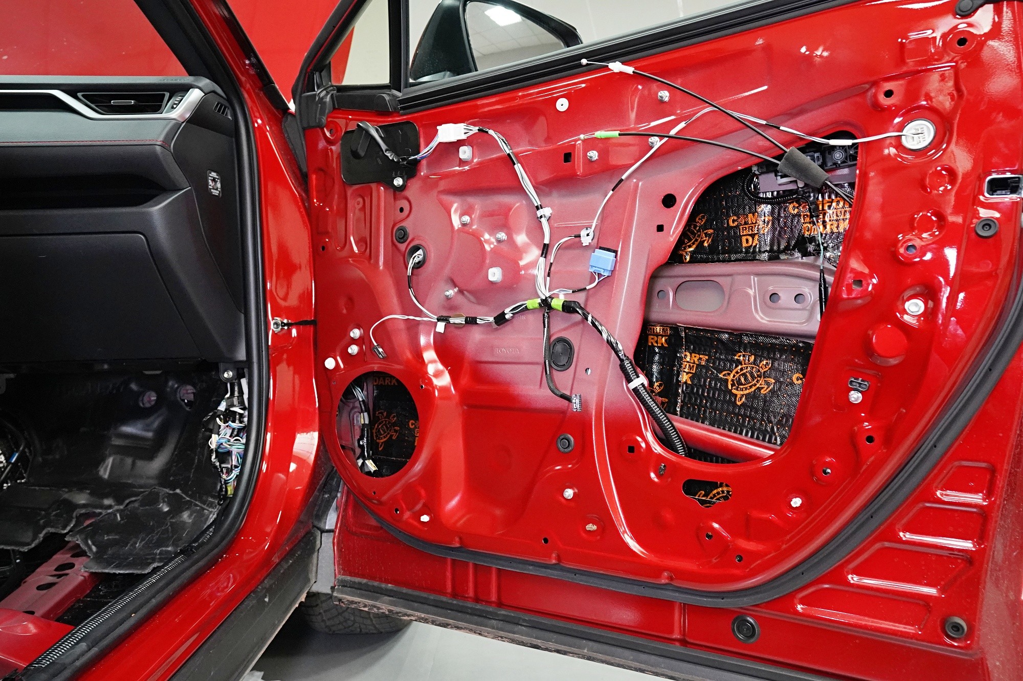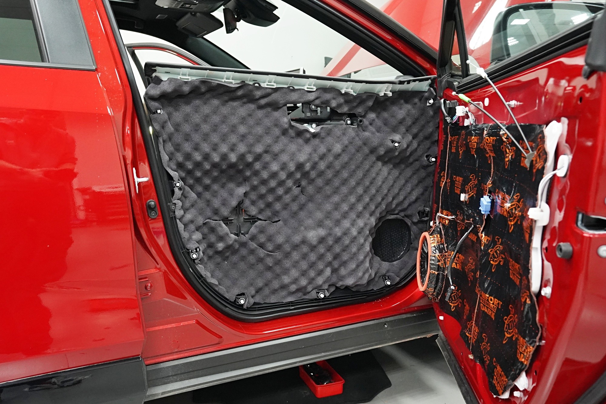 Odhlučnění vozu Toyota RAV4 poslední generace. Oproti minulé verzi je tento oblíbený crossover k nepoznání. Vyrostl, zmohutněl, chlubí se hranatým designem a zároveň se ukázalo, že auto je pohodlnější díky překonfigurování standardního odpružení. Toyota také vylepšila zvukovou izolaci, konkrétně prý došlo ke snížení hluku o 30% a to zejména v oblasti vibrací. Majitel a náš klient ovšem nesouhlasí a jelikož jeho vůz je neúnosně hlučný, zejména s rostoucí rychlostí, rozhodl se pro náš nejpopulárnější balíček odhlučnění Premium. Zaměřili jsme se tedy na téměř všechny zásadní oblasti vozu, konkrétně přední, zadní a páté dveře, podlahu, zavazadlový prostor, přední i zadní podběhy z vnitřní strany a kapotu. Na instalaci pracovali zároveň tři naši zkušení technici, kteří montáž zvládnou v rámci 1 pracovního dne. Více zajímavých informací o instalaci se dozvíte v naší fotoreportáži.