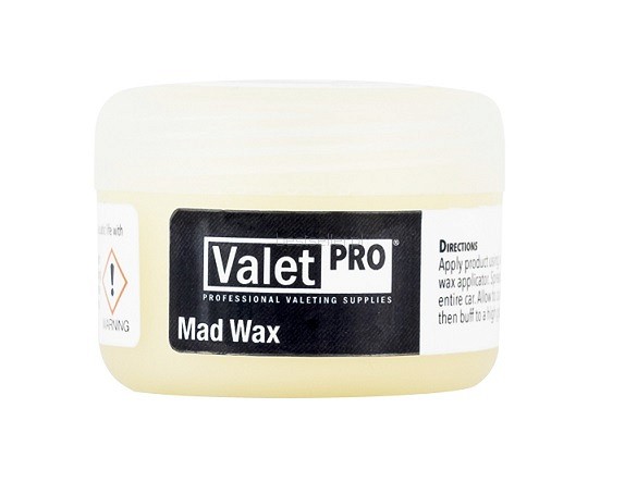 ValetPro Mad Wax je tuhý vosk vyrobený ze směsi montanského vosku. Tento tuhý vosk vyniká velmi snadným použitím, dodává laku neuvěřitelný lesk a snižuje díky účinné ochranné vrstvě usazování nečistot na laku. Doporučujeme v ideálním případě nanášet více vrstev. Kromě jednoduché aplikace má také nízkou cenu a v této kategorii velmi slušnou výdrž až 3 měsíce. Samotné balení vosku vydrží voskování na více jak 1 až 2 běžných vozidel.