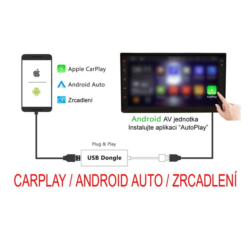 Bezdrátové CarPlay a Android Auto adaptéry Univerzální modul Apple CarPlay / Android Auto / zrcadlení pro AV jednotky s operačním systémem Android nebo Windows CE