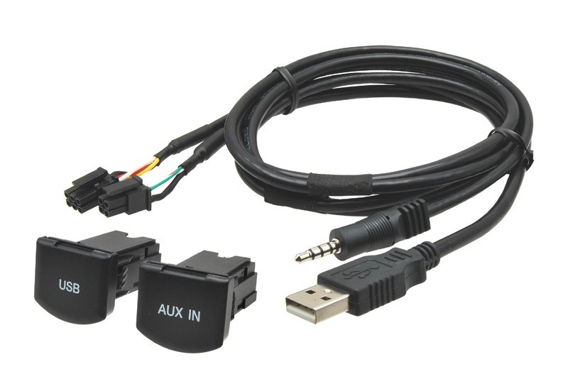 - Adaptér pro připojení USB a AUX signálu nahrazuje původní konektor v automobilu při použití aftermarket (dodatečně) instalovaného autorádia.