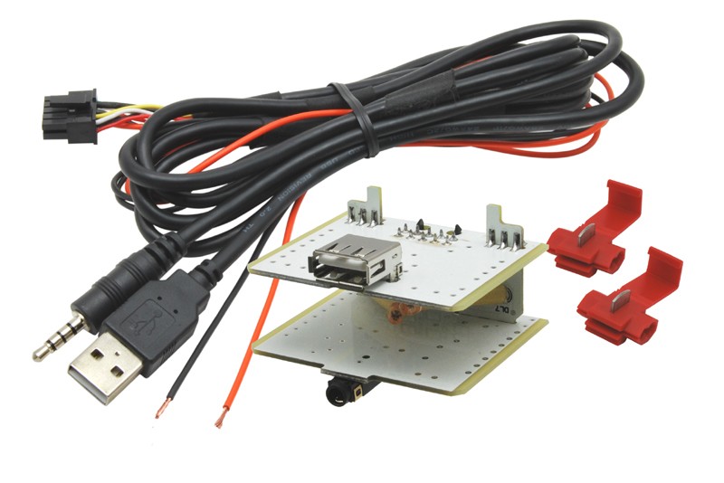 - Adaptér pro připojení USB a AUX signálu nahrazuje původní konektor v automobilu při použití aftermarket (dodatečně) instalovaného autorádia.