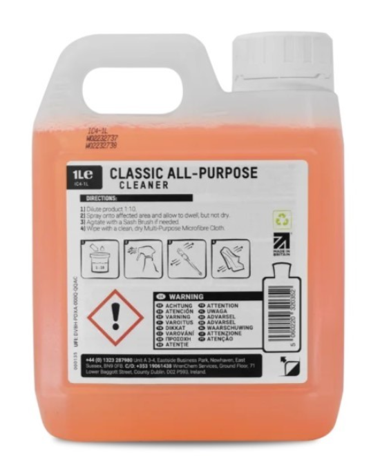 ValetPRO Classic All Purpose Cleaner je skvělý univerzální čistič, který patří vůbec k těm nejoblíbenějším a nejčastěji používaným při údržbě auta. Používá se na plasty v interiéru, čištění skvrn na čalounění apod. Rozpouští špínu, která se pak snadno čistí, odstraňuje nečistoty z plastového povrchu apod. Classic All Purpose Cleaner poskytuje skvělý výkon za výhodnou cenu. Vynikající při použití v interiéru i exteriéru vozu.