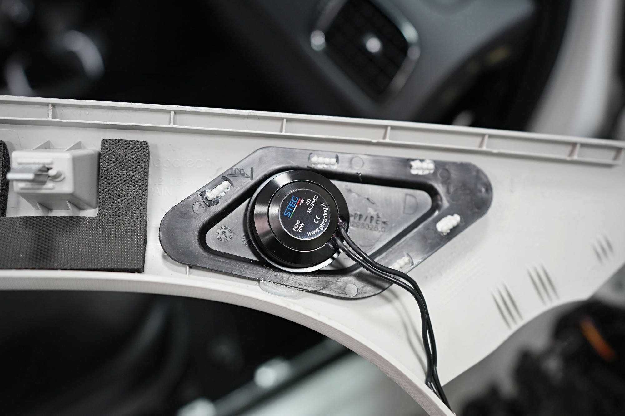 Pro výměnu továrních reproduktorů jsme zvolili set komponentních a koaxiálních reproduktorů italského výrobce Steg, které jsme instalovali do předních a zadních dveří automobilu VW Polo. Vybrané reproduktory se výkonově perfektně hodí k zesilovači stejného výrobce a zvukově naplní potenciál této instalace.