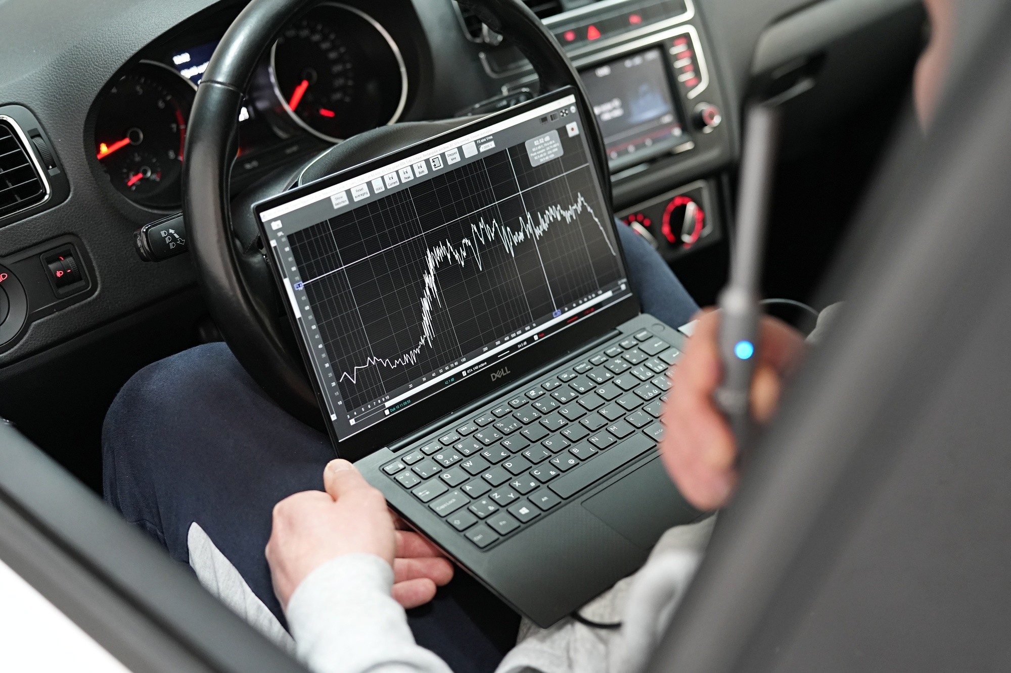 Nastává nejdůležitější část ozvučení vozu VW Polo a tím je nastavení zvuku. Interiér každého auta má unikátní akustiku a není ideální pro poslech hudby. Proto je nejprve nezbytné změřit pomocí kalibrovaného mikrofonu všechny nežádoucí efekty a překážky, které vznikají po cestě zvuku do našeho ucha. Výslednou ekvalizační křivku každého reproduktoru ovlivňuje spousta faktorů jako je jejich pozice, prostor za reproduktorem, materiál koše reproduktoru, ale i překážky zvuku jako jsou sedačky, středový tunel nebo palubní deska. Měříme tedy postupně frekvenční odezvu každého reproduktoru zvlášť a výsledky následně zapisujeme do programu DSP procesoru.