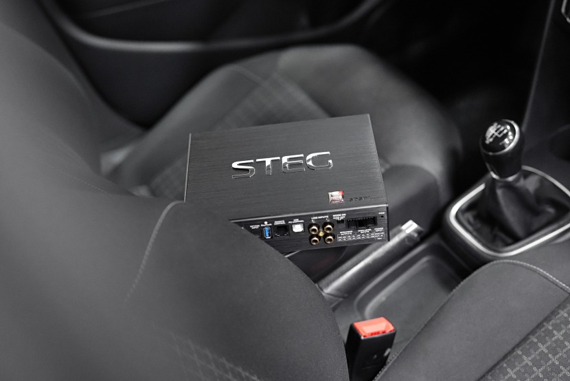 Dostáváme se k zesilovači, kterým je novinka od společnosti Steg s označením SDSP 4. Zesilovač disponuje dostatečným výkonem pro zapojení výše uvedených reproduktorů a především integrovaným DSP procesorem, na kterém zvuk velmi detailně nastavíme. Zaujmou i kompaktní rozměry a příkladné zpracování.