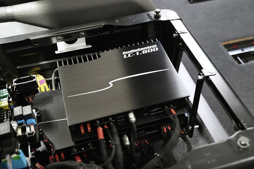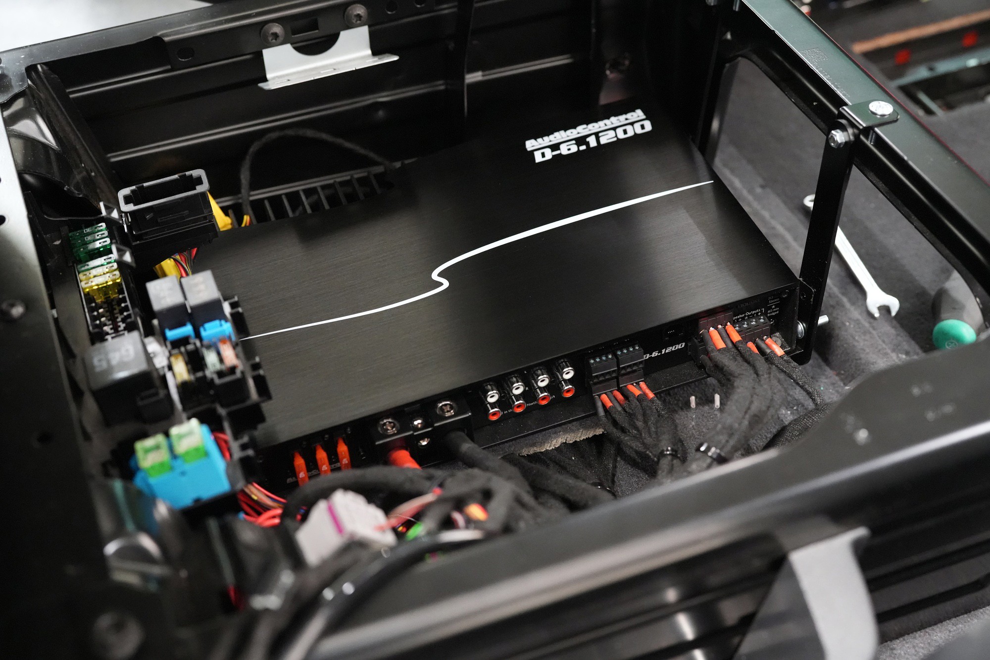 Dali jsme si náročný úkol v podobě umístění dvou zesilovačů AudioControl pod sedačku řidiče, což se nám díky poměrně kompaktním rozměrům zesilovačů povedlo. Nejprve jsme instalovali 6kanálový zesilovač s úctyhodným výkonem 6 x 125 W RMS a integrovaným DSP procesorem, pro který jsme vyrobili speciální konstrukci pro uchycení. Zesilovač bude pohánět přední komponentní reproduktory zapojené v aktivním režimu a zadní koaxiální reproduktory. Díky digitální technologii se můžeme spolehnout na bezproblémové chlazení, vysokou účinnost a v případě AudioControl i velmi kvalitní zvuk. A o ten nám u této instalace jde především.