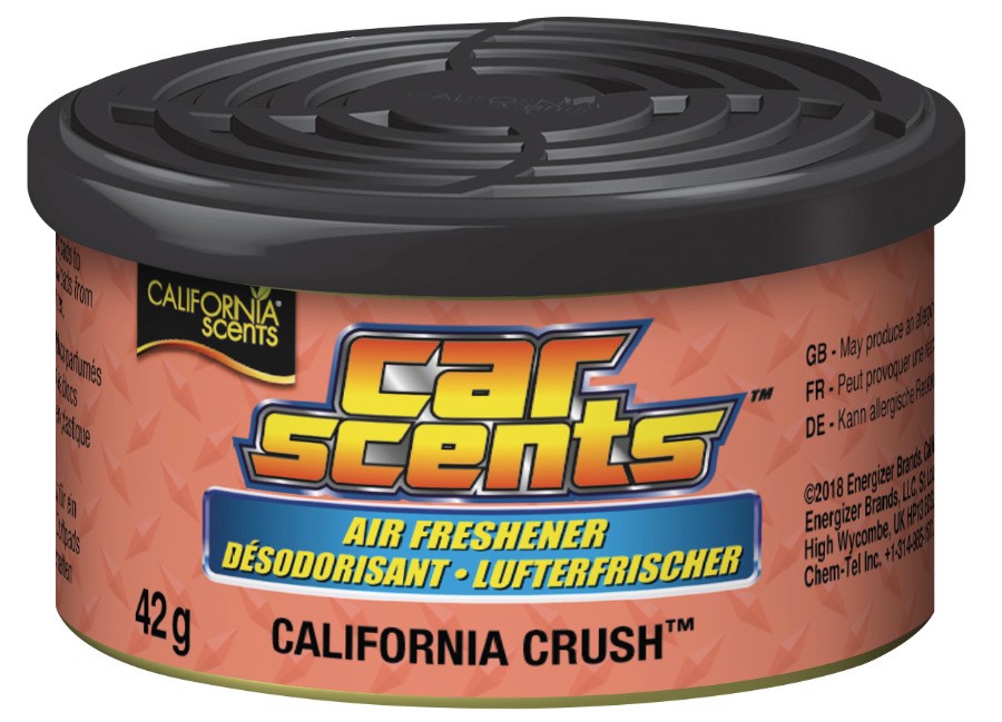 Originální osvěžovač vzduchu s pevnou náplní v praktické malé plechovce, která rychle provoní vaše auto, byt nebo kancelář. Součástí plechovky je černé plastové víčko s otočným regulátorem, kterým můžete měnit intenzitu vůně. Zapomeňte na osvěžovače vzduchu a vůně do automobilu, které svoji intenzitu ztratí po několika málo dnech. Luxusní, smyslné a intenzivní vůně California Scents jsou zde, aby vám dokázaly, co znamená opravdu dlouhotrvající a přijemná vůně v autě. Každá dóza Car Scents® obsahuje tři bloky lisovaného lnu napuštěného parfémem. Vzhledem k pevné konzistenci osvěžovače vzduchu California Scents nehrozí únik tekutiny, která by vám mohla poleptat palubní desku.Přírodní a zároveň ekologické vůně do auta