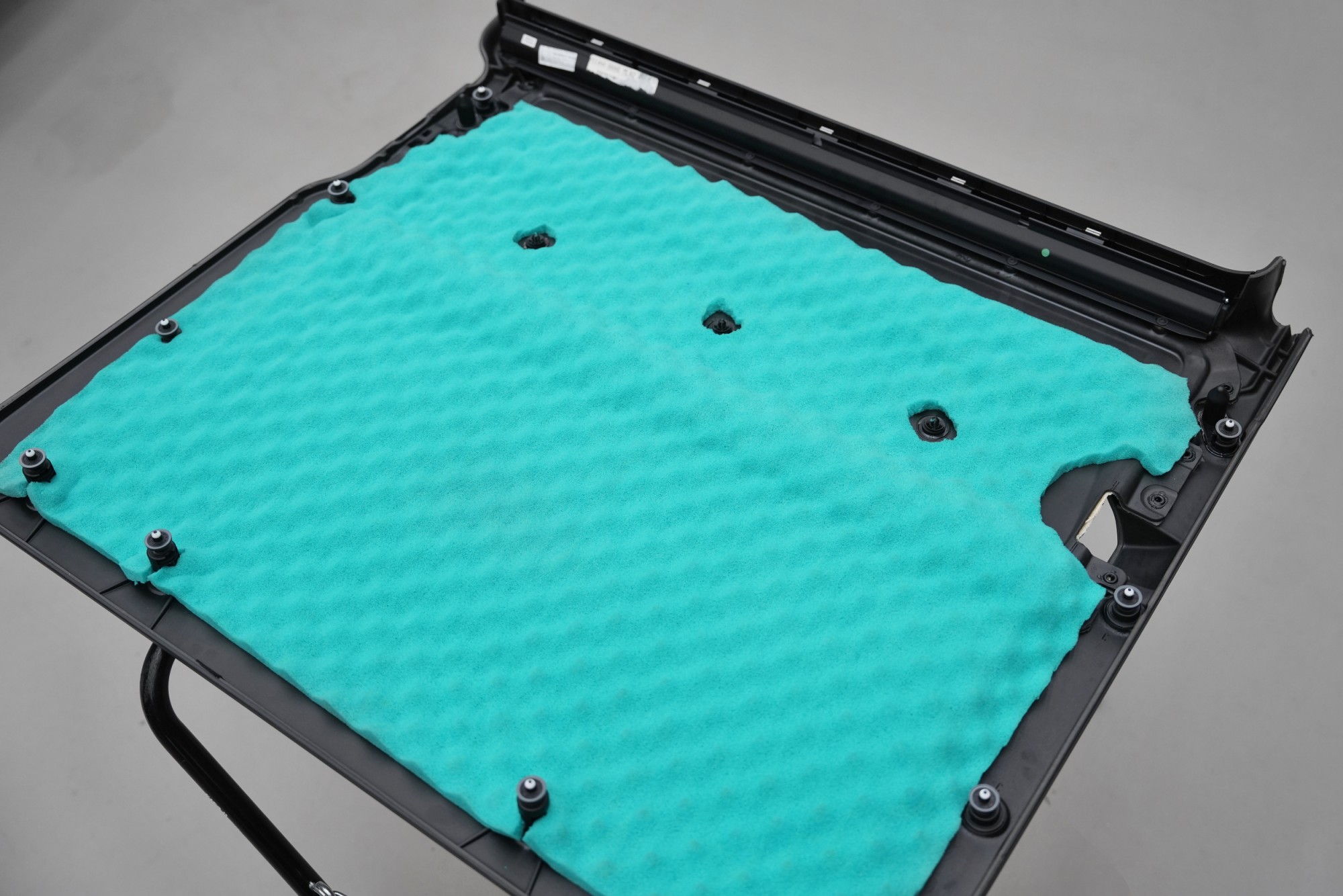 Poslední vrstvou odhlučnění dveří je Comfortmat Softwave Expert o tloušťce 15 mm. Tuto vysoce flexibilní pěnu s tvarovou pamětí aplikujeme přímo na plastové čalounění dveří, kde jejím hlavním úkolem není jen snížení hluku, ale především eliminace skřípání, vrzání a nežádoucích zvuků plastů, kabeláže a dalších komponent uvnitř dveří. Zároveň dochází k dalšímu utlumení středních a vyšších frekvencí, které by se jinak do interiéru přenášely. Oproti standardní verzi Softwave je varianta Expert vyrobena z hustší a účinnější polyuretanové pěny, díky čemuž posouvá akustický komfort dveří ještě o úroveň výš.