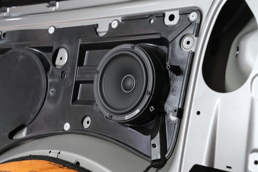Pro doplnění zvukové scény a komfortu cestujících v zadní části vozu jsme instalovali reproduktory stejné řady také do tohoto prostoru. Díky své vyšší citlivosti jsou vhodné pro zapojení na tovární autorádio a při správném nastavení celého systému nenarušují přední poslechovou scénu. Zadní část tak plní podpůrnou roli bez negativního vlivu na lokalizaci a prostorovost zvuku v přední části kabiny.