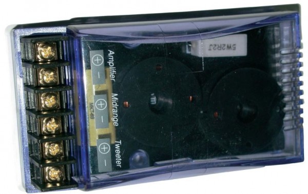 2pásmová frekvenční výhybka na 250 W max. a 100 W RMS. Vysoce kvalitní komponenty s fóliovým kondenzátorem pro vysoké frekvence. Dělící frekvence 3500 Hz / 12 dB. Rozměry (d x š x v) 120 x 65 x 34 mm.