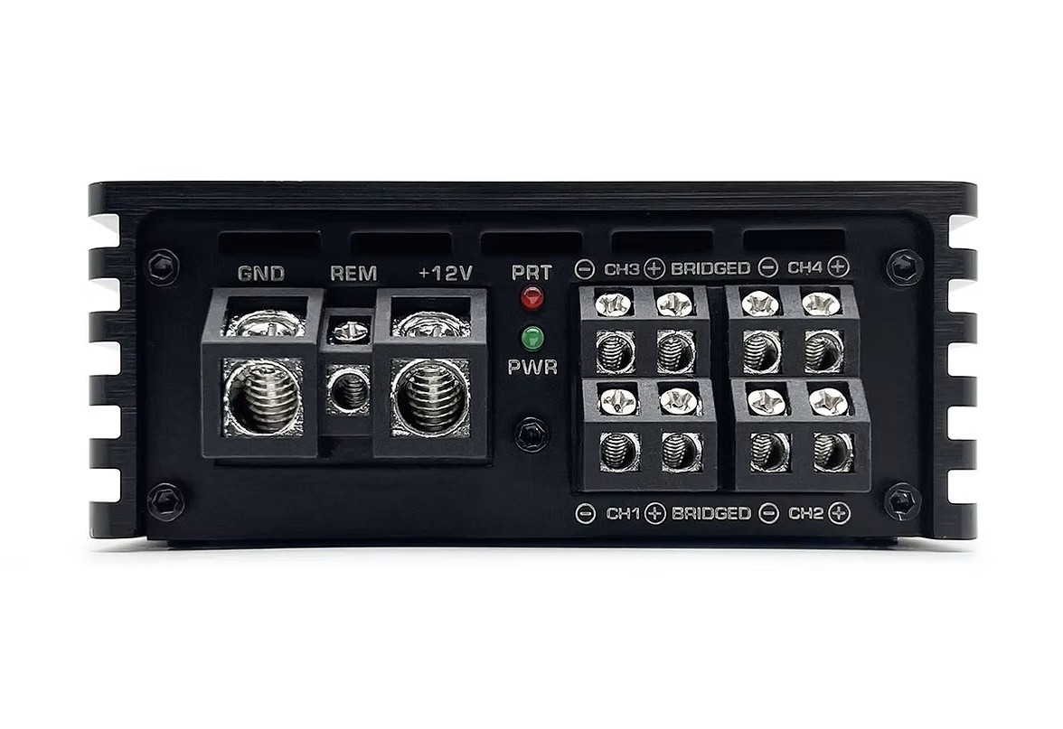 - Výkon: 4 × 150 W RMS @ 4 Ω / 2 × 350 W RMS ve můstku.