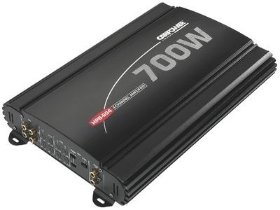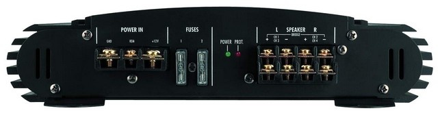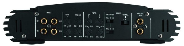 | Počet kanálů zesilovačeZesilovače se rozdělují na: - Monobloky - 2kanálové - 3kanálové - 4kanálové - 5kanálové - 6kanálové - více kanálové Každý kanál slouží na napájení jednoho reproduktoru u koaxialního typu, popř. jedné strany, pokud se jedná o komponentní reproduktory. Zesilovače typu monoblok se používají hlavně na subwoofery. 2kanálové jsou vhodné jak na subwoofery, tak například na přední pár reproduktorů v autě. 3kanálové se používá na přední nebo zadní reproduktory + subwoofer. 4kanálové se používají na přední + zadní reproduktory nebo 1 pár reproduktorů + subwoofer. 6 nebo 5kanálové se používají na 2 páry reproduktorů + subwoofer, nejčastěji. Můstkování znamená zapojení zesilovače do můstku, kdy se použije + pól z jednoho kanálu a - pól z druhého kanálu. Ve většině případů to bývá na zesilovači znázorněné jako "BRIDGED". | 4/3/2 |