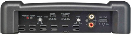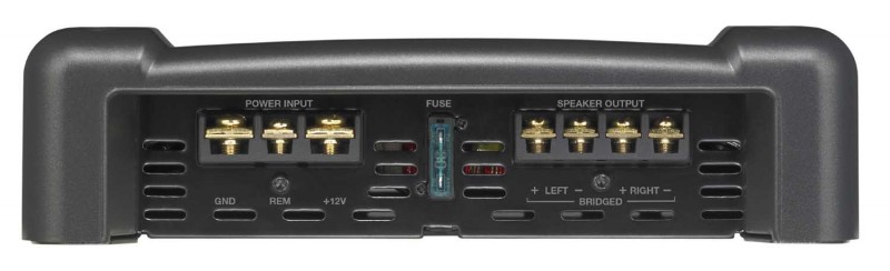 | Počet kanálů zesilovačeZesilovače se rozdělují na: - Monobloky - 2kanálové - 3kanálové - 4kanálové - 5kanálové - 6kanálové - více kanálové Každý kanál slouží na napájení jednoho reproduktoru u koaxialního typu, popř. jedné strany, pokud se jedná o komponentní reproduktory. Zesilovače typu monoblok se používají hlavně na subwoofery. 2kanálové jsou vhodné jak na subwoofery, tak například na přední pár reproduktorů v autě. 3kanálové se používá na přední nebo zadní reproduktory + subwoofer. 4kanálové se používají na přední + zadní reproduktory nebo 1 pár reproduktorů + subwoofer. 6 nebo 5kanálové se používají na 2 páry reproduktorů + subwoofer, nejčastěji. Můstkování znamená zapojení zesilovače do můstku, kdy se použije + pól z jednoho kanálu a - pól z druhého kanálu. Ve většině případů to bývá na zesilovači znázorněné jako "BRIDGED". | 2/1 kanálový |