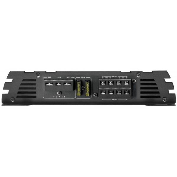 | Počet kanálů zesilovačeZesilovače se rozdělují na: - Monobloky - 2kanálové - 3kanálové - 4kanálové - 5kanálové - 6kanálové - více kanálové Každý kanál slouží na napájení jednoho reproduktoru u koaxialního typu, popř. jedné strany, pokud se jedná o komponentní reproduktory. Zesilovače typu monoblok se používají hlavně na subwoofery. 2kanálové jsou vhodné jak na subwoofery, tak například na přední pár reproduktorů v autě. 3kanálové se používá na přední nebo zadní reproduktory + subwoofer. 4kanálové se používají na přední + zadní reproduktory nebo 1 pár reproduktorů + subwoofer. 6 nebo 5kanálové se používají na 2 páry reproduktorů + subwoofer, nejčastěji. Můstkování znamená zapojení zesilovače do můstku, kdy se použije + pól z jednoho kanálu a - pól z druhého kanálu. Ve většině případů to bývá na zesilovači znázorněné jako "BRIDGED". | 4 |