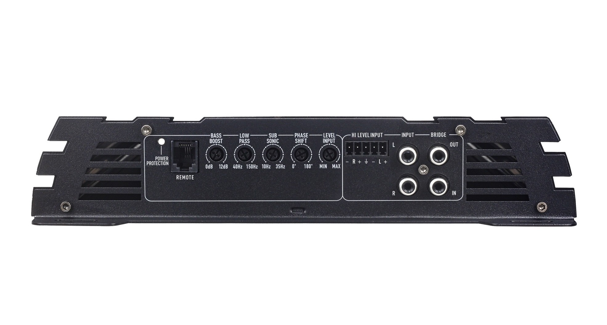 | Dolní pásmová propust (LPF)LPF / LP resp. "low pass filter" nabízí možnost nastavení zesilovače pomocí potenciometru tak, aby spodní pásmo hrálo jen frekvence v určitém pásmu, které potřebujete. Tento filtr se používá k nastavení frekvenčního rozsahu pro subwoofer, z důvodu aby nedocházelo k jeho přetěžování nebo zkreslení zvuku. Příklad: Zesilovače mají nejčastěji LPF od 20 do 300 Hz. Doporučujeme nastavovat tento potenciometr v rozmezí 45-80 Hz. | 40 – 150 Hz |
