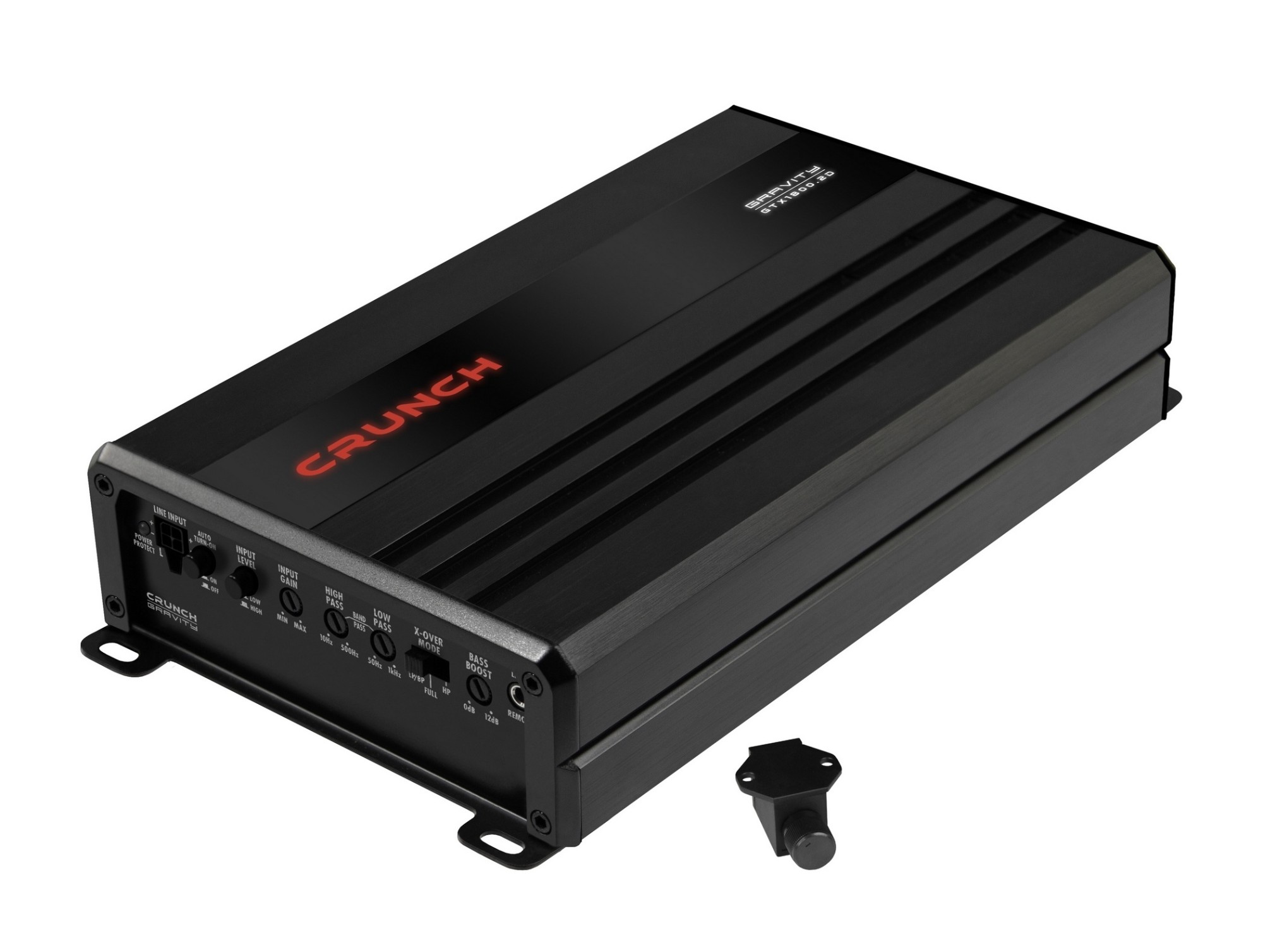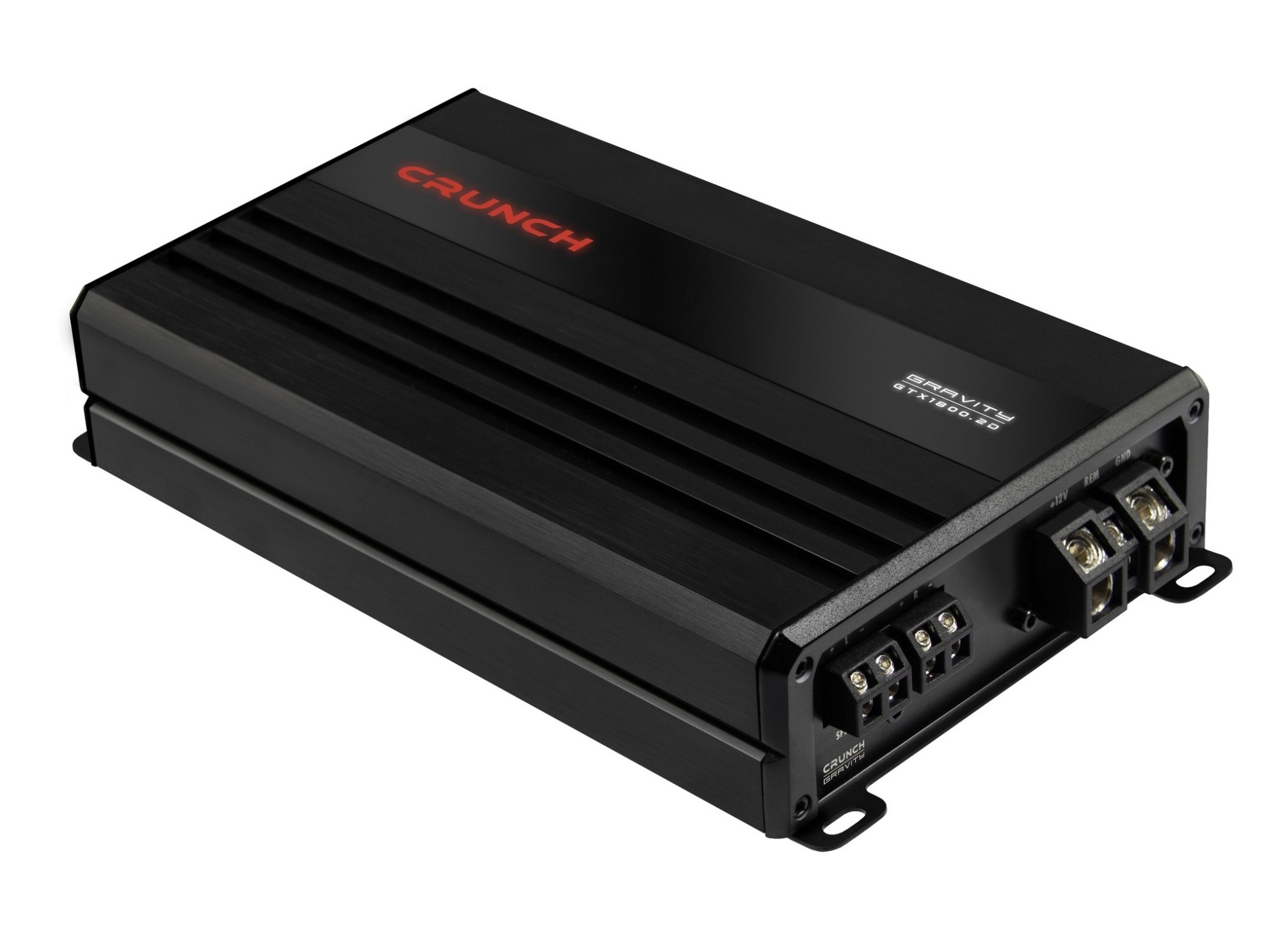 Crunch GTX1800.2D je kompaktní dvoukanálový zesilovač z řady GRAVITY GTX, která zahrnuje celkem 10 modelů zaměřených na malé rozměry a vysoký výkon v dané třídě. Díky konstrukci třídy D nabízí efektivní provoz a solidní výkonovou rezervu při zachování velmi kompaktního těla, které umožňuje instalaci i do prostorově omezených míst ve voze. Model je vhodný pro napájení reproduktorů i subwooferu v můstkovém zapojení a umožňuje základní přizpůsobení systému pomocí horní a dolní pásmové propusti, funkce bass boost i bandpass režimu. Samozřejmostí jsou jak RCA, tak vysokonapěťové vstupy s automatickým zapnutím, součástí balení je i dálkové ovládání úrovně basů. Konstrukci doplňuje hliníkový chladič a horní panel s dvoubarevně podsvíceným logem a označením modelu, které dodává zesilovači výraznější vizuální charakter.