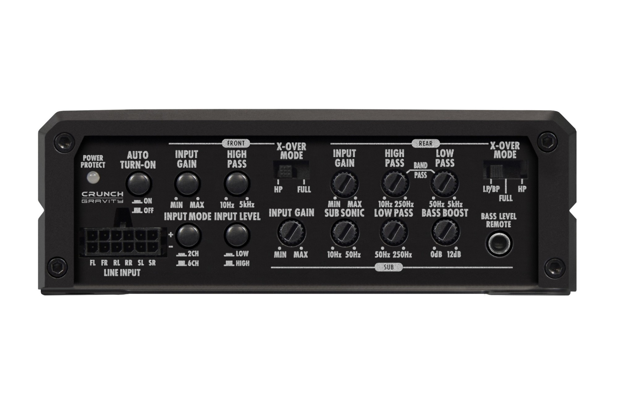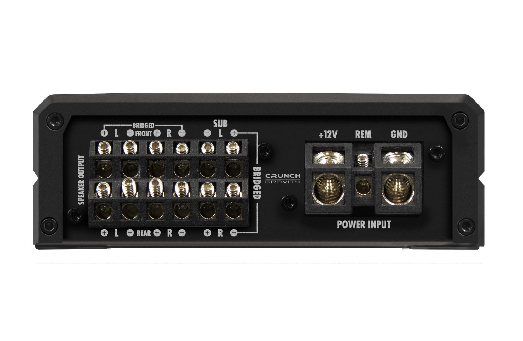 Crunch GTX2600.6D je kompaktní čtyřkanálový zesilovač z řady GRAVITY GTX, která zahrnuje celkem 10 modelů zaměřených na malé rozměry a vysoký výkon v dané třídě. Díky konstrukci třídy D nabízí efektivní provoz a solidní výkonovou rezervu při zachování velmi kompaktního těla, které umožňuje instalaci i do prostorově omezených míst ve voze. Model je vhodný pro napájení reproduktorů i subwooferu v můstkovém zapojení a umožňuje základní přizpůsobení systému pomocí horní a dolní pásmové propusti, funkce bass boost i bandpass režimu. Samozřejmostí jsou jak RCA, tak vysokonapěťové vstupy s automatickým zapnutím, součástí balení je i dálkové ovládání úrovně basů. Konstrukci doplňuje hliníkový chladič a horní panel s dvoubarevně podsvíceným logem a označením modelu, které dodává zesilovači výraznější vizuální charakter.