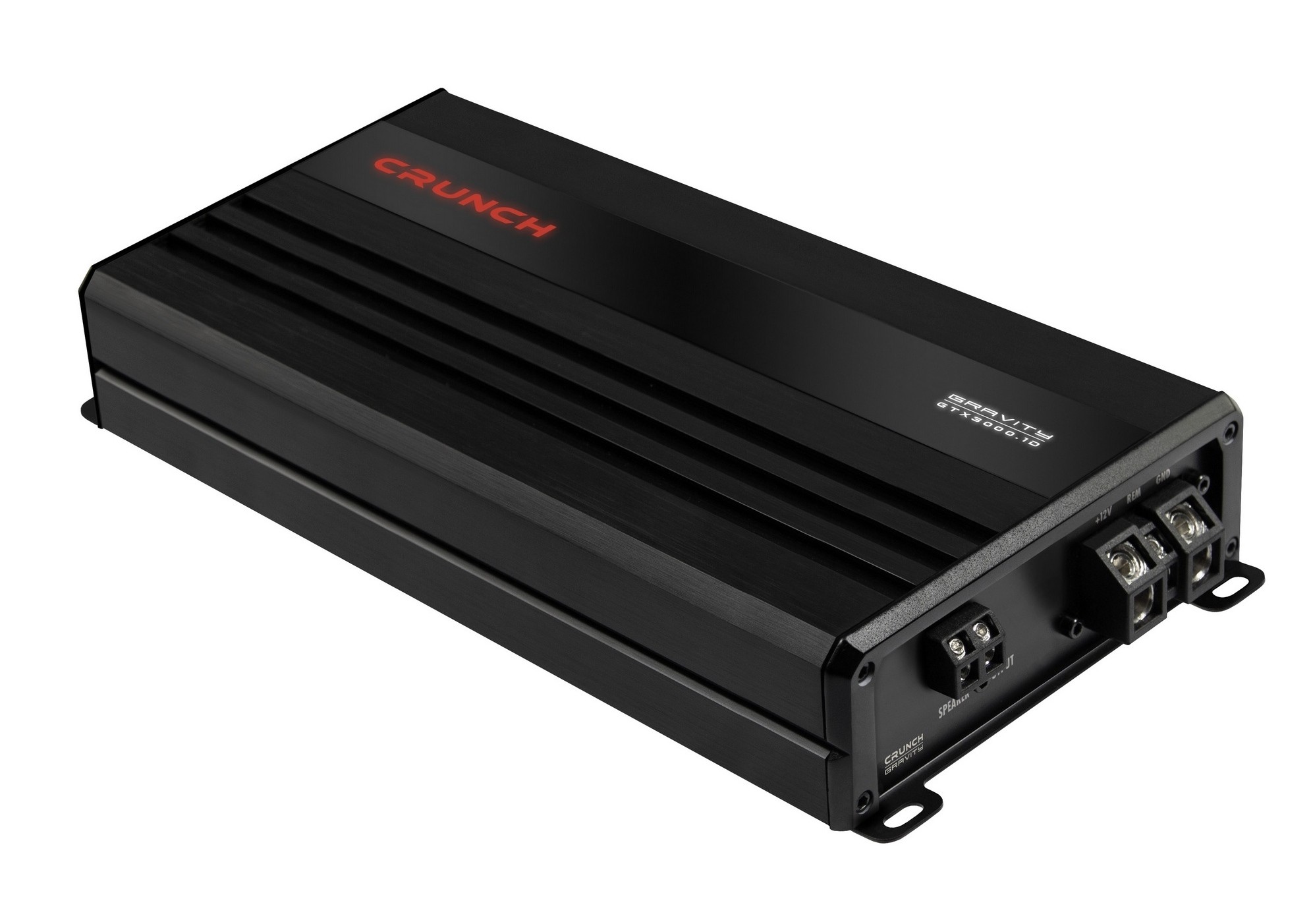Crunch GTX3000.1D je kompaktní jednokanálový zesilovač z řady GRAVITY GTX, která zahrnuje celkem 10 modelů zaměřených na malé rozměry a vysoký výkon v dané třídě. Díky konstrukci třídy D nabízí efektivní provoz a solidní výkonovou rezervu při zachování velmi kompaktního těla, které umožňuje instalaci i do prostorově omezených míst ve voze. Model je vhodný pro napájení subwooferu a umožňuje základní přizpůsobení systému. Zesilovač je vybaven nastavitelným dolnopropustným filtrem a subsonickým filtrem pro ochranu subwooferu v bassreflexových ozvučnicích. Nechybí plynulý bass boost a dálkové ovládání úrovně basů pro regulaci z místa řidiče. Samozřejmostí jsou jak RCA, tak vysokonapěťové vstupy s automatickým zapnutím. Konstrukci doplňuje hliníkový chladič a horní panel s dvoubarevně podsvíceným logem a označením modelu, které dodává zesilovači výraznější vizuální charakter.