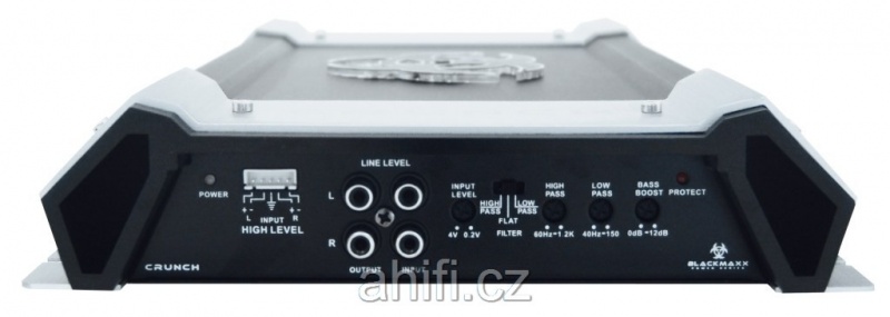 | Horní pásmová propust (HPF)HPF / HP resp. "hi pass filter" nabízí možnost nastavení zesilovače pomocí potenciometru tak, aby střední, případně středobasové a výškové frekvence hrály od určité frekvence směrem nahoru. Příklad: Zesilovače mají nejčastěji HPF od 40 do 300 Hz. Pokud nastavíme na potenciometru hodnotu cca. 150 Hz, budou zvuk ořezán tak, že bude hrát frekvence od 150 Hz až po maximální horní hranici celého frekvenčního rozsahu zesilovače, třeba až 20.000 Hz. Doporučujeme nastavovat tento potenciometr v rozmezí 80-160 Hz. Díky této možnosti nastavení snesou reproduktory vyšší výkon, jelikož je nebudete přetěžovat basy ve spodním frekvenčním pásmu. | 60 - 1200 Hz |