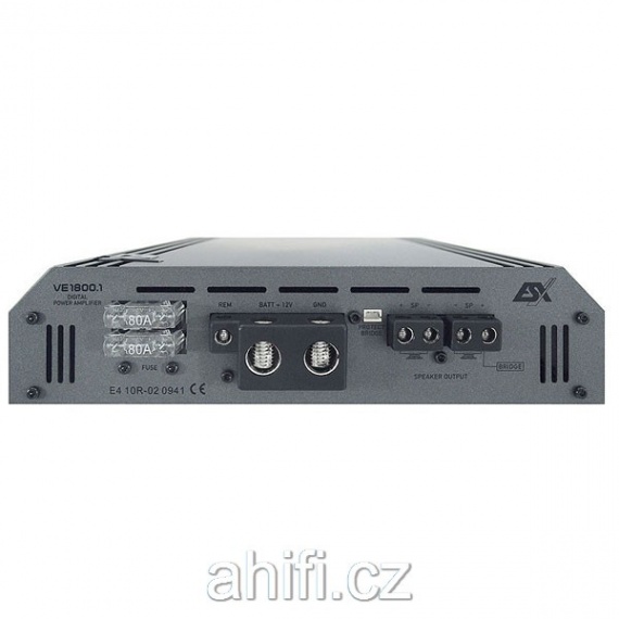 | RMS výkon na 1 ΩRMS výkon při zatížení subwooferu na 1 Ω. RMS výkon je stálý výkon zesilovače a je to jeden z nejdůležitějších parametrů při výběru zesilovače. Při zapojení na 1 Ω může docházet k výraznému zahřívání zesilovače. | 1 x 1800 Watt |