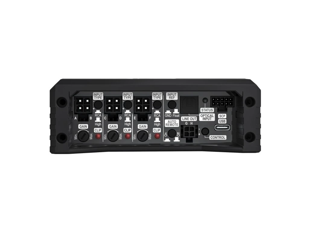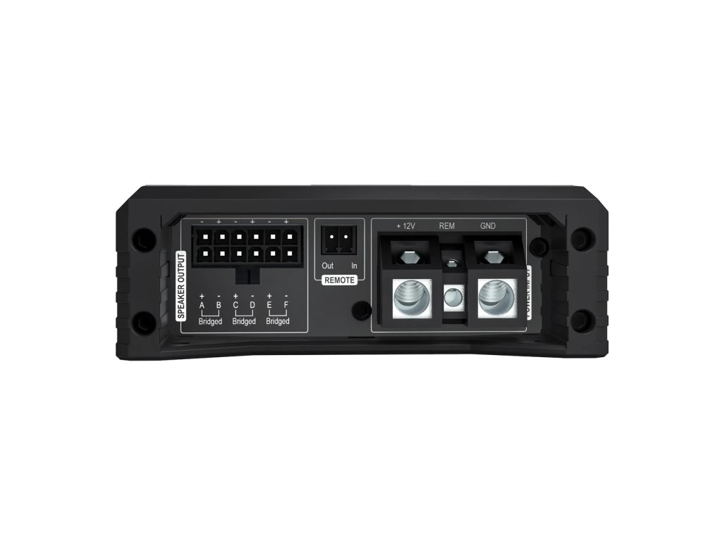 AMPLIFY 206 DSP rozšiřuje řadu 2 o vysoce všestrannou 6kanálovou variantu, která pokrývá širokou škálu aplikací v moderních vozidlech. Díky plně můstkové architektuře lze zesilovače flexibilně konfigurovat pro 3-, 4-, 5- nebo 6kanálový provoz. Jeho vysoký výstupní výkon a kompaktní konstrukce třídy D ho předurčují pro plně aktivní 3pásmové přední systémy v 6kanálovém režimu i pro klasické 5kanálové uspořádání, kde kanály 1–4 napájejí přední a zadní reproduktory, zatímco můstkové kanály 5/6 dodávají až 380 W RMS při 4 Ω do specializovaného subwooferu. Celkově nabízí 206 DSP dostatečné výkonové rezervy s 6 x 100 W RMS při 4 Ω, 6 x 190 W RMS při 2 Ω nebo 3 x 380 W RMS v přemostění při 4 Ω, což z něj činí ideální řešení pro vše od propracovaných vícepásmových konceptů až po dynamické konfigurace předních/zadních reproduktorů/subwooferu.
