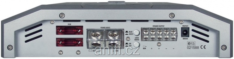 | Počet kanálů zesilovačeZesilovače se rozdělují na: - Monobloky - 2kanálové - 3kanálové - 4kanálové - 5kanálové - 6kanálové - více kanálové Každý kanál slouží na napájení jednoho reproduktoru u koaxialního typu, popř. jedné strany, pokud se jedná o komponentní reproduktory. Zesilovače typu monoblok se používají hlavně na subwoofery. 2kanálové jsou vhodné jak na subwoofery, tak například na přední pár reproduktorů v autě. 3kanálové se používá na přední nebo zadní reproduktory + subwoofer. 4kanálové se používají na přední + zadní reproduktory nebo 1 pár reproduktorů + subwoofer. 6 nebo 5kanálové se používají na 2 páry reproduktorů + subwoofer, nejčastěji. Můstkování znamená zapojení zesilovače do můstku, kdy se použije + pól z jednoho kanálu a - pól z druhého kanálu. Ve většině případů to bývá na zesilovači znázorněné jako "BRIDGED". | monoblok |