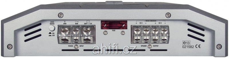 | Počet kanálů zesilovačeZesilovače se rozdělují na: - Monobloky - 2kanálové - 3kanálové - 4kanálové - 5kanálové - 6kanálové - více kanálové Každý kanál slouží na napájení jednoho reproduktoru u koaxialního typu, popř. jedné strany, pokud se jedná o komponentní reproduktory. Zesilovače typu monoblok se používají hlavně na subwoofery. 2kanálové jsou vhodné jak na subwoofery, tak například na přední pár reproduktorů v autě. 3kanálové se používá na přední nebo zadní reproduktory + subwoofer. 4kanálové se používají na přední + zadní reproduktory nebo 1 pár reproduktorů + subwoofer. 6 nebo 5kanálové se používají na 2 páry reproduktorů + subwoofer, nejčastěji. Můstkování znamená zapojení zesilovače do můstku, kdy se použije + pól z jednoho kanálu a - pól z druhého kanálu. Ve většině případů to bývá na zesilovači znázorněné jako "BRIDGED". | 2/1 |