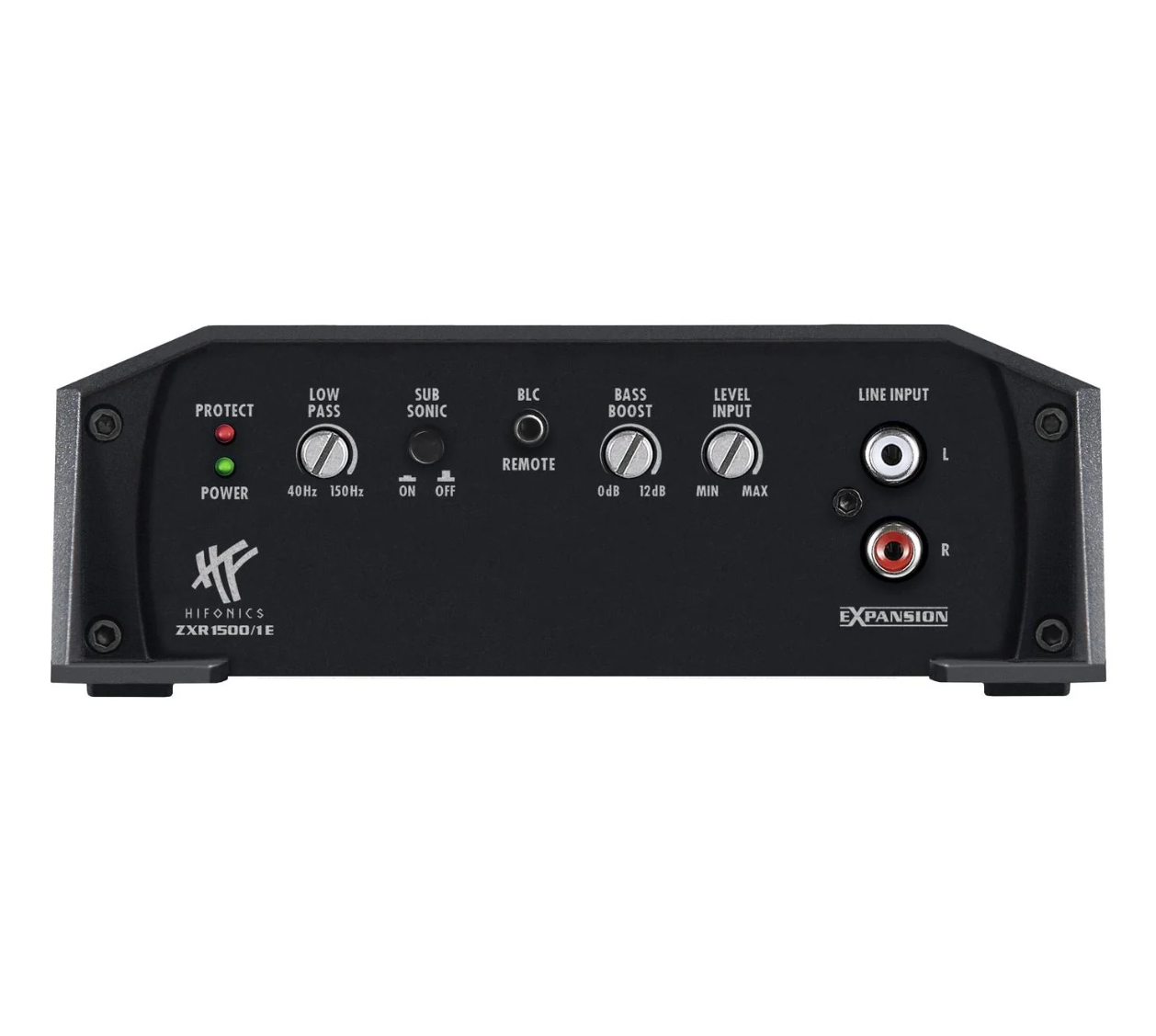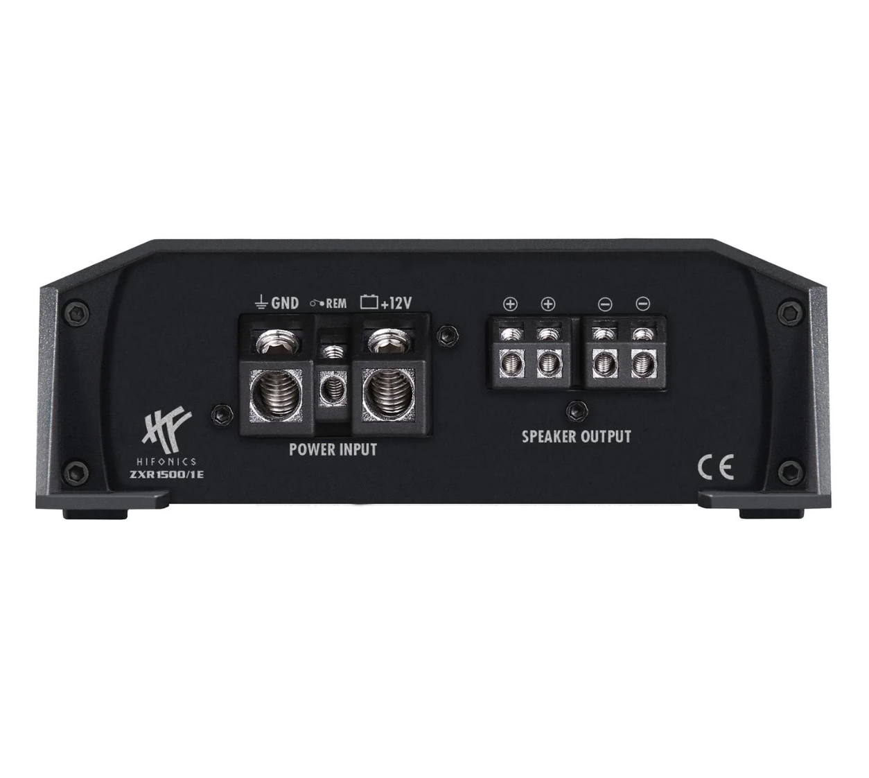 Hifonics nyní nabízí tři takové modely řady ZXR/E, vybavené dálkovým ovládáním basového zisku a výkony 750, 1000 a 1500 W RMS, takže bez problému zvládnou i velké subwoofery. Díky nejnovějším čipům Infineon® dosahují extrémní účinnosti až 92 %, což znamená nižší spotřebu energie a menší zátěž pro palubní síť vozidla. Ideální kombinací je propojení takového monobloku s 8kanálovým DSP zesilovačem ZXR800/8DSP ze stejné designové řady, který nabízí 10kanálový DSP s Bluetooth ovládáním. Přes RCA/Cinch propojení pak ZXR/E monoblok poskytne celému systému potřebný subbasový základ.