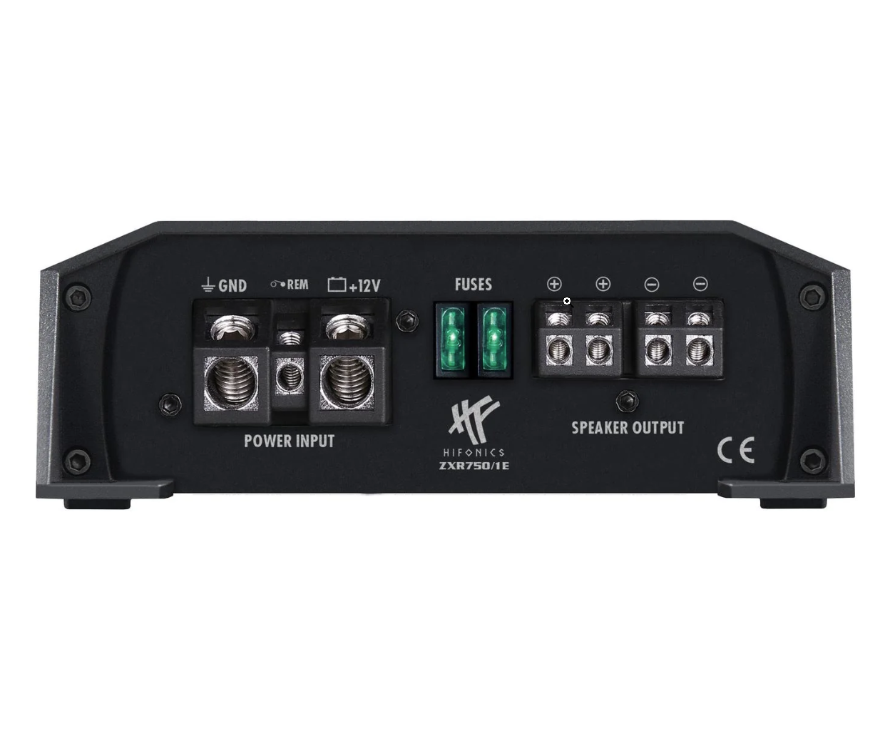 Hifonics nyní nabízí tři takové modely řady ZXR/E s dálkovým ovládáním basového zisku a výkony 750, 1000 a 1500 W RMS, které si bez problému poradí i s velkými subwoofery. Díky nejnovějším čipům Infineon® dosahují extrémní účinnosti až 92 %, čímž šetří palubní síť a snižují spotřebu energie. Ideální je kombinace těchto monobloků s 8kanálovým DSP zesilovačem ZXR800/8DSP ze stejné designové řady, který disponuje 10kanálovým DSP s Bluetooth ovládáním. Pomocí RCA/Cinch připojení dodá monoblok ZXR/E systému odpovídající basový základ.
