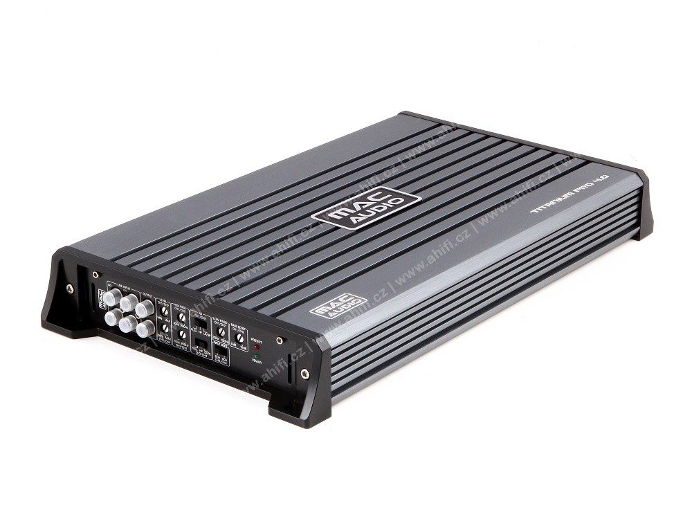 Titan Pro 4.0 -> 4-kanálový zesilovač, který nabízí maximální výstupní výkon až 350 wattů na kanál při 2 ohmech. Full-funkce crossover zajišťuje velkorysé možnosti přizpůsobení. To zahrnuje variabilní horní propust při 10 - 200 Hz (12 dB na oktávu), variabilní dolní propust při 30 - 150 Hz (12 dB na oktávu), stejně jako variabilní bass boos mezi 0 a 12 dB při 45 Hz. Rozsah funkcí zahrnuje i výstupy na nízké úrovni s součtového signálu z kanálů 1 - 4 pro připojení subwooferu k zesilovači. Nejvyšší model 4-kanálového zesilovače Mac Audio konečně v nabídce.