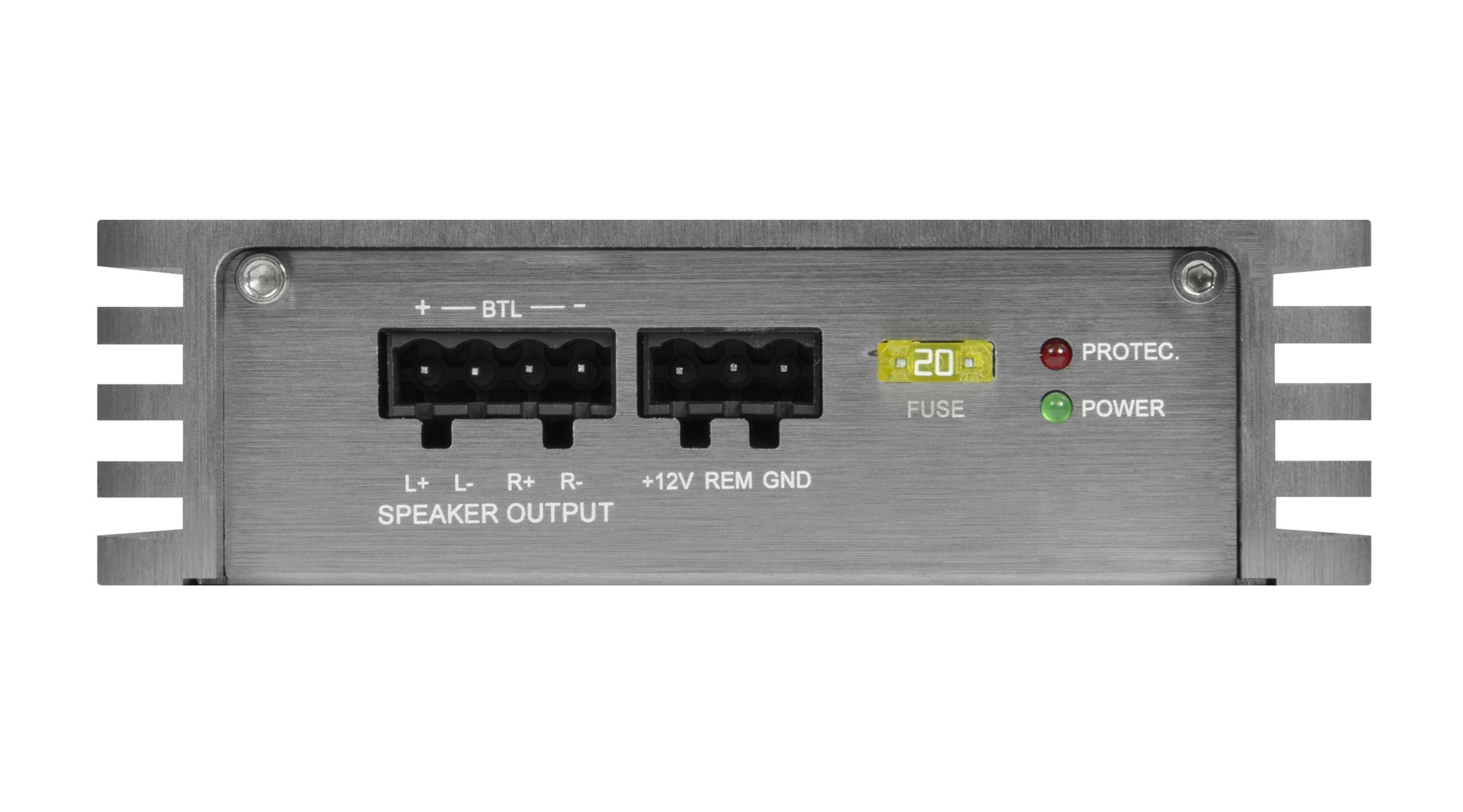 Zesilovač je vybaven RCA vstupy a díky kompaktním konektorům se snadno zapojuje i v omezeném prostoru. Praktické jsou také zásuvné konektory pro napájení a reproduktory, které výrazně urychlují montáž i případný servis. Podpora start-stop systémů a možnost připojení přes vysokourovňové vstupy rozšiřují kompatibilitu i pro moderní vozidla.