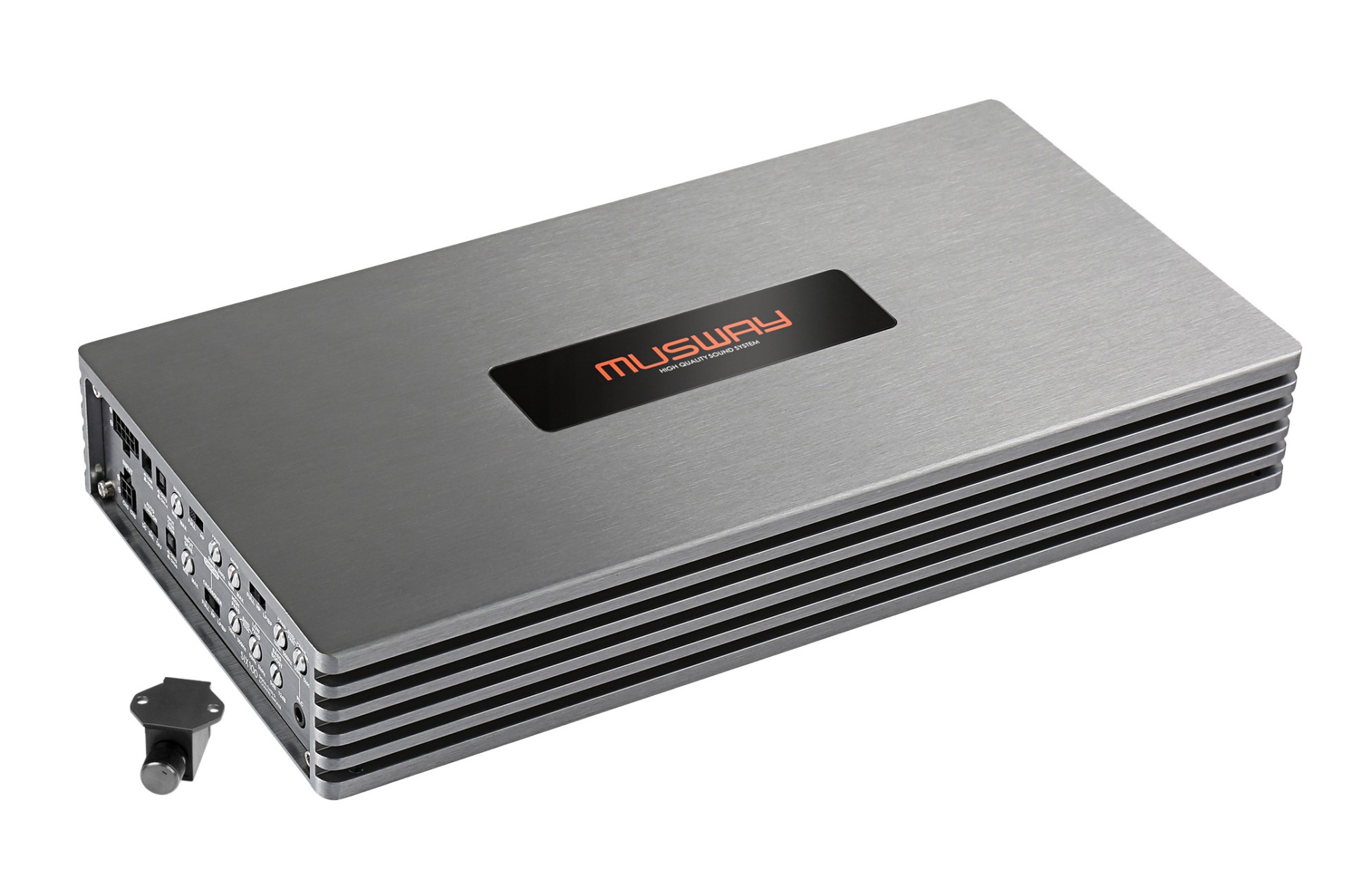 Musway SIX100 je výkonný 6kanálový zesilovač třídy D navržený pro komplexní automobilové audio systémy, kde je kladen důraz na maximální flexibilitu zapojení, vysoký výkon a kompaktní rozměry. Díky promyšlené koncepci kanálů a širokým možnostem nastavení filtrů umožňuje realizovat plně aktivní, poloaktivní i klasické pasivní konfigurace bez nutnosti externího procesoru. Konstrukce zesilovače vychází z osvědčené platformy Musway MX a díky kompaktním rozměrům jej lze instalovat i do omezených prostor. Design z kartáčovaného hliníku s precizně zpracovanými detaily navazuje na ostatní zesilovače Musway a umožňuje snadnou kombinaci s DSP zesilovači a procesory této značky. Samozřejmostí je bezproblémová integrace do moderních vozidel – zesilovač disponuje RCA i vysokourovňovými vstupy s EPS®, automatickým zapnutím při detekci signálu a podporou start-stop systémů. Technologie IFT (Interference Free Technology) minimalizuje elektromagnetické rušení a zajišťuje čistý příjem rádia. Součástí balení je také dálkové ovládání úrovně basů.