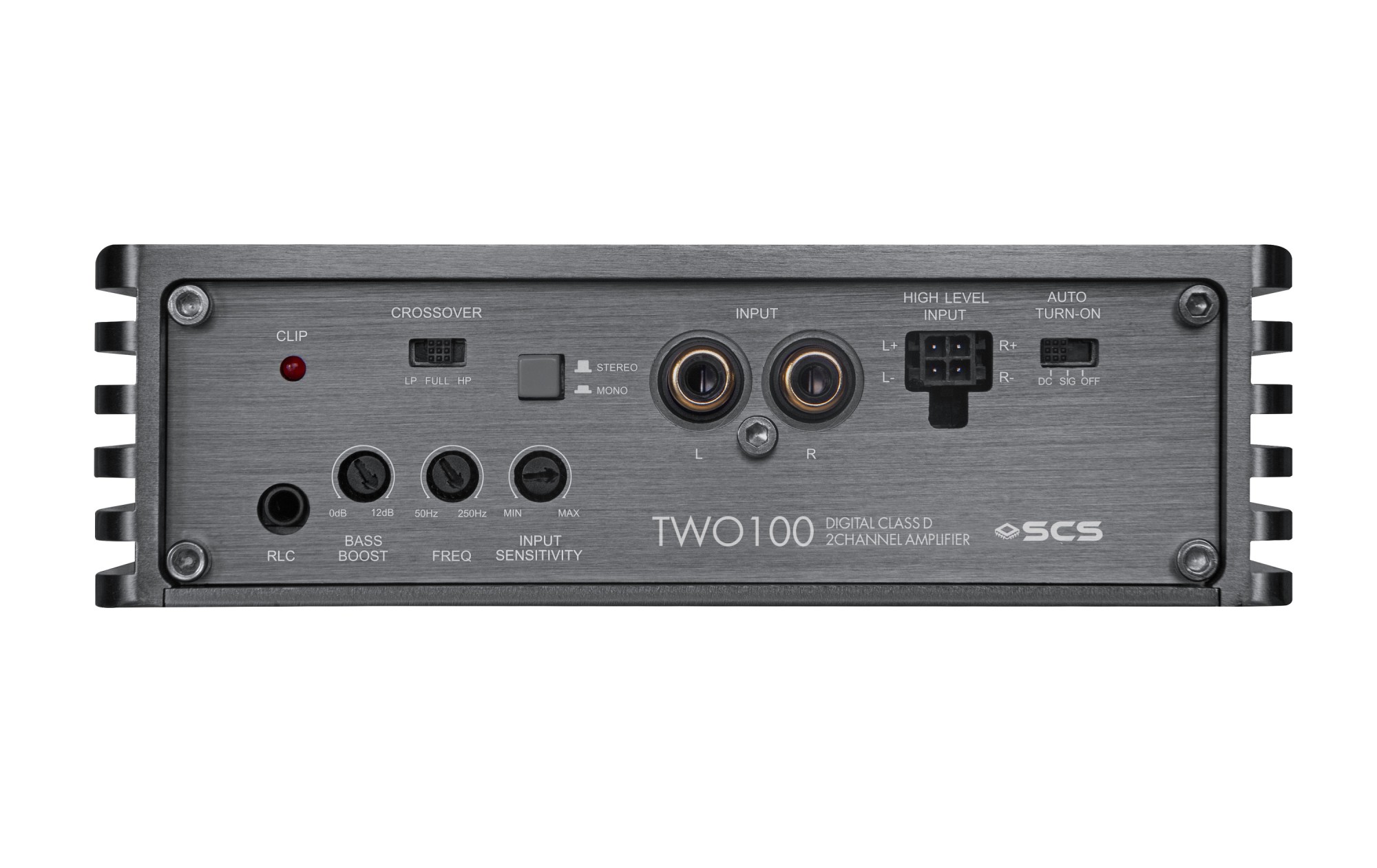 Zesilovač je vybaven přepínatelným vysokopásmovým a nízkopásmovým filtrem v rozsahu 50 – 250 Hz a bass boostem až +12 dB při 45 Hz. Díky tomu lze TWO100 snadno přizpůsobit jak pro pohon reproduktorů, tak pro subwoofer. Nechybí ani stereo/mono režim, vysokourovňové vstupy s automatickým zapnutím a možnost jednoduché integrace do moderních vozidel bez nutnosti REM signálu. Praktickým doplňkem je také dálkové ovládání úrovně basů.