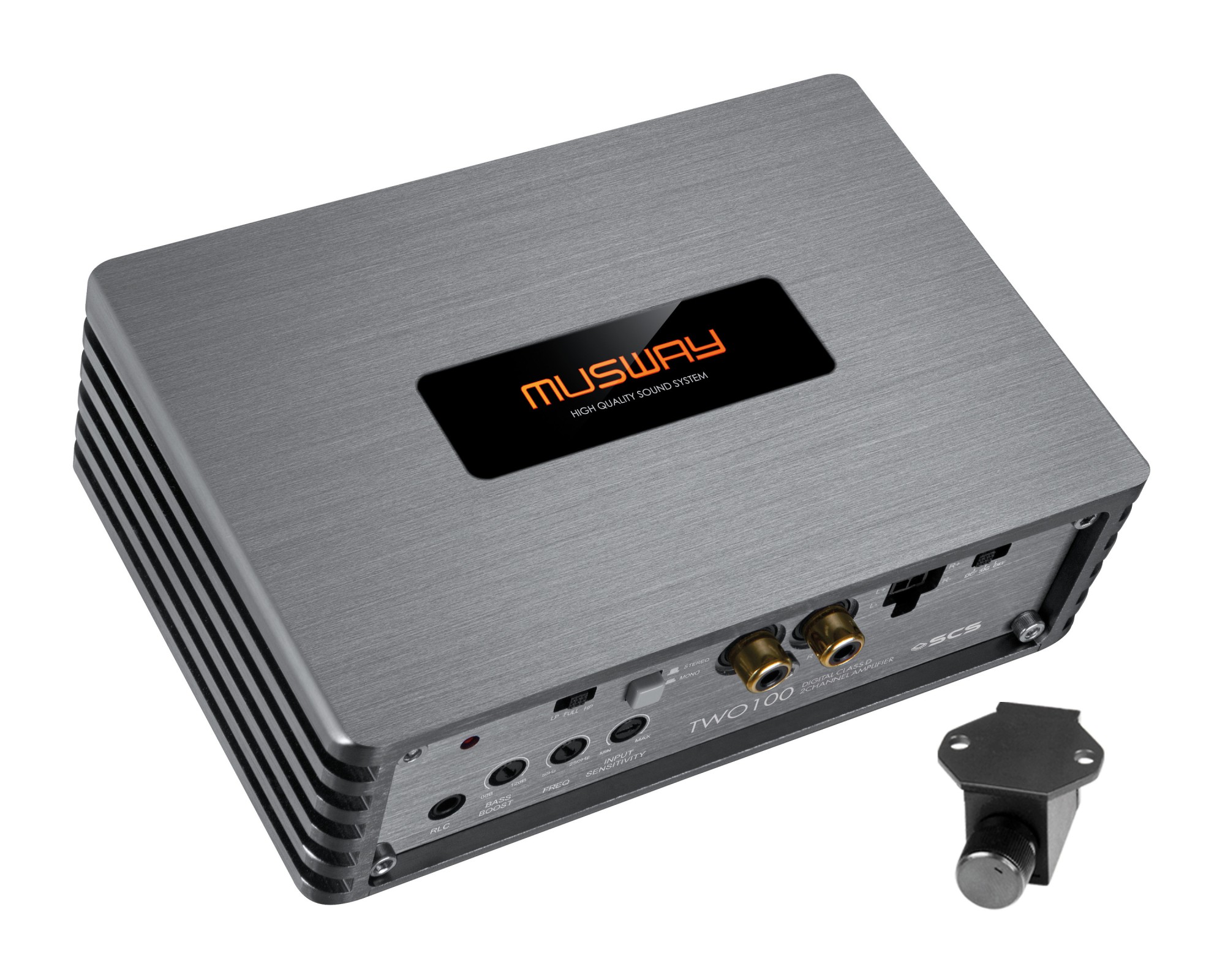 Musway TWO100 je kompaktní 2kanálový zesilovač třídy D, který vyniká především mimořádným poměrem výkonu k velikosti. I přes velmi malé rozměry nabízí až 2 × 200 W RMS při 2 Ω nebo 400 W RMS v můstku, což jej řadí mezi nejvýkonnější mini zesilovače ve své třídě. Konstrukčně vychází z moderní platformy Musway s důrazem na vysokou účinnost, stabilní výkon a bezproblémovou integraci do současných vozidel. Integrovaný nový systém Smart Control System od společnosti Musway řídí optimální provozní teplotu a výkon a zároveň funguje jako ochrana proti přetížení. Díky technologii IFT (Interference Free Technology) nedochází k rušení rádia ani dalších systémů, zatímco ochranný systém EPS (Error Protection System) zajišťuje bezpečný provoz i při připojení k továrním autorádiím.