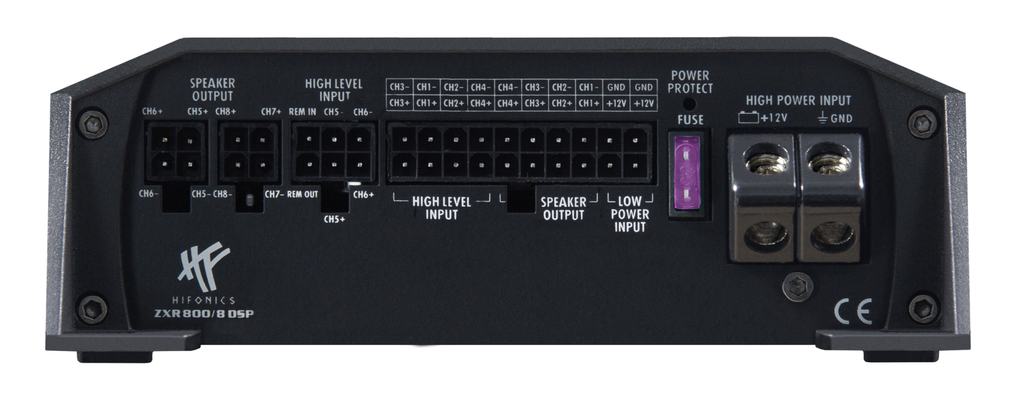 HiFonics ZXR800/8DSP ze série ZEUS Power je vysoce pokročilý 8kanálový zesilovač s integrovaným 10kanálovým digitálním signálovým procesorem (DSP), který kombinuje kvalitní analogové zesílení třídy A/B s precizním digitálním zpracováním zvuku. Tento model byl navržen pro náročné instalace moderních audio systémů ve vozidlech, kde je vyžadována maximální kontrola nad výsledným zvukem.